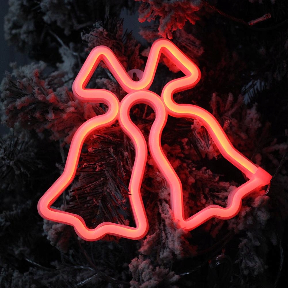 Неоновые колокольчики подчеркнут праздничный характер помещения и наполнят его интересным красным свечением