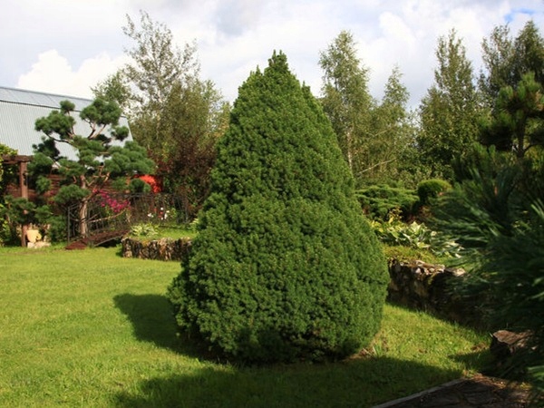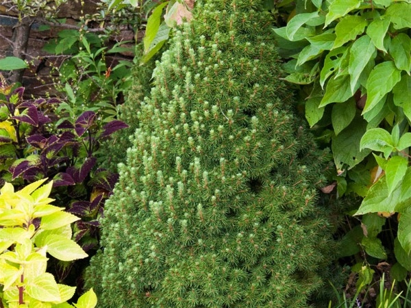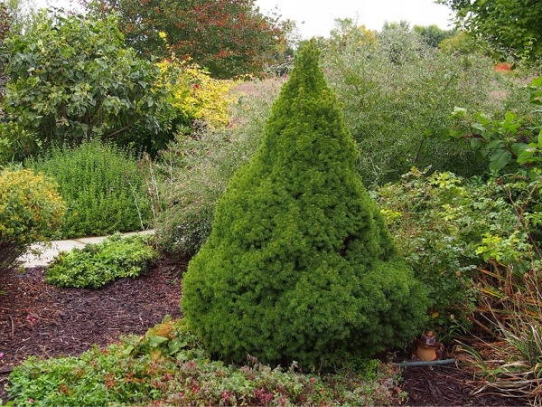 Интересный, карликовый сорт конической формы, в 10-летнем возрасте достигающий около 1 м высоты. Самый популярный из сортов ели белой. Часто используется как маленькая елочка. Высота объекта около 3 м. Побеги расположены густо, покрыты короткой светло-зеленой хвоей, особенно хорошо и интенсивно окрашенной осенью. Иглы тонкие, мягкие на ощупь. Требования к почве и влажности средние. Лучше всего растет на умеренно влажной почве и на солнечных местах. В сухой и жаркой среде он может быть заражен паутинным клещом.