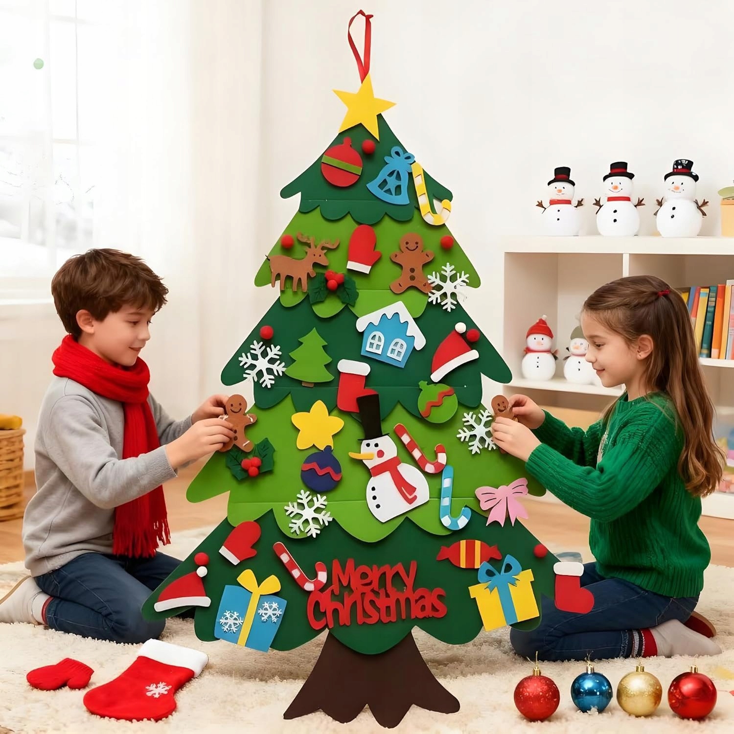 Идеальное рождественское украшение и креативная игрушка в одном флаконе! В набор входит фетровая елочка (98 х 69 см) и 32 красочных украшения, которые дети могут прикрепить по своему усмотрению. Отличное рождественское занятие и отличная идея для подарка!
