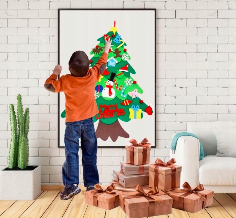Елка из фетра содержит целых 33 украшения, которые дети могут разместить на елке самостоятельно. Это отличная возможность развивать творческие способности и ручные навыки детей.