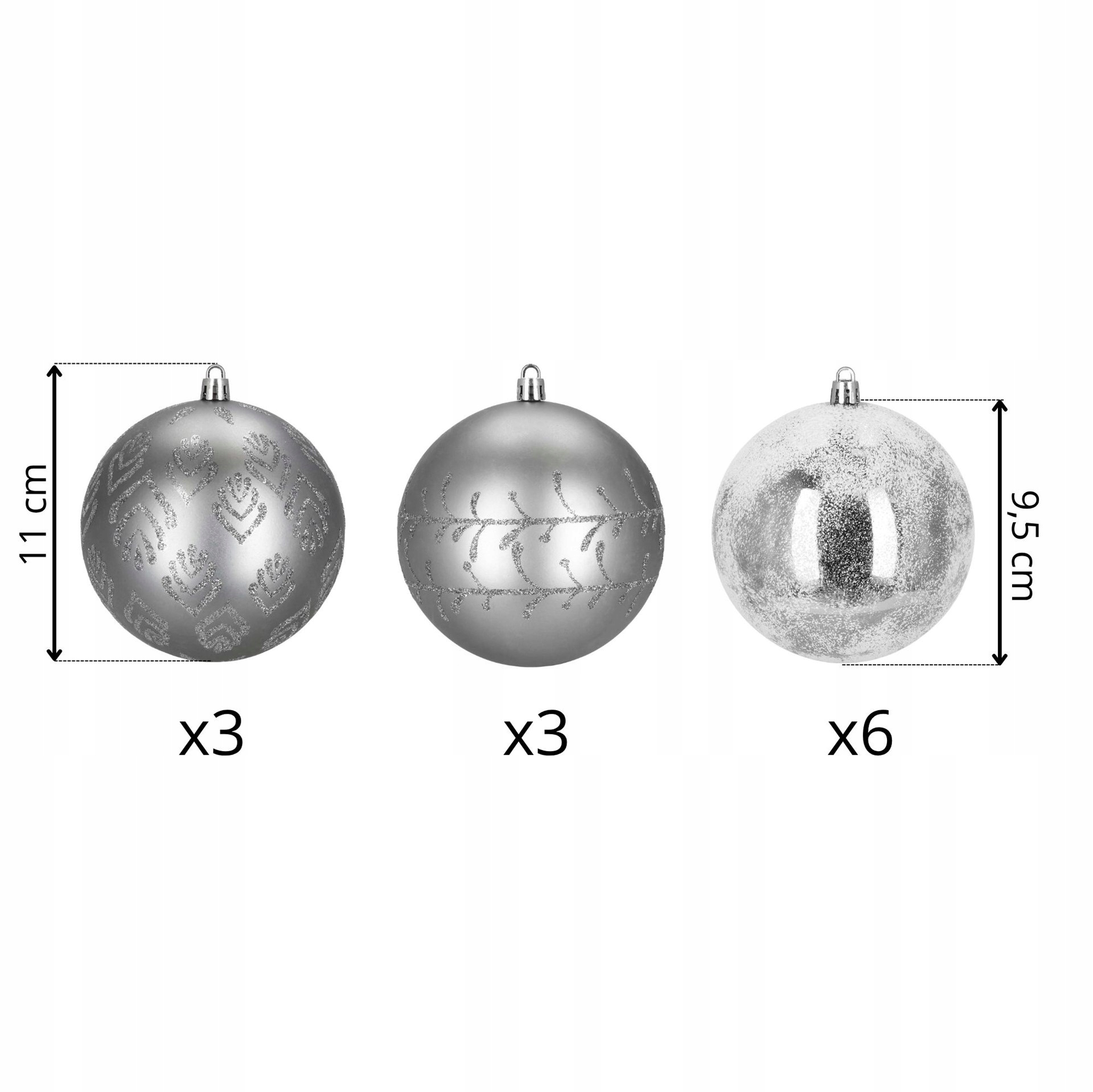 РОЖДЕСТВЕНСКИЕ ШАРЫ 12x СЕРЕБРЯНЫЕ ДЛЯ РОЖДЕСТВЕНСКОЙ ЕЛКИ, НЕРУБИМЫЕ РОЖДЕСТВЕНСКИЕ УКРАШЕНИЯ 11см