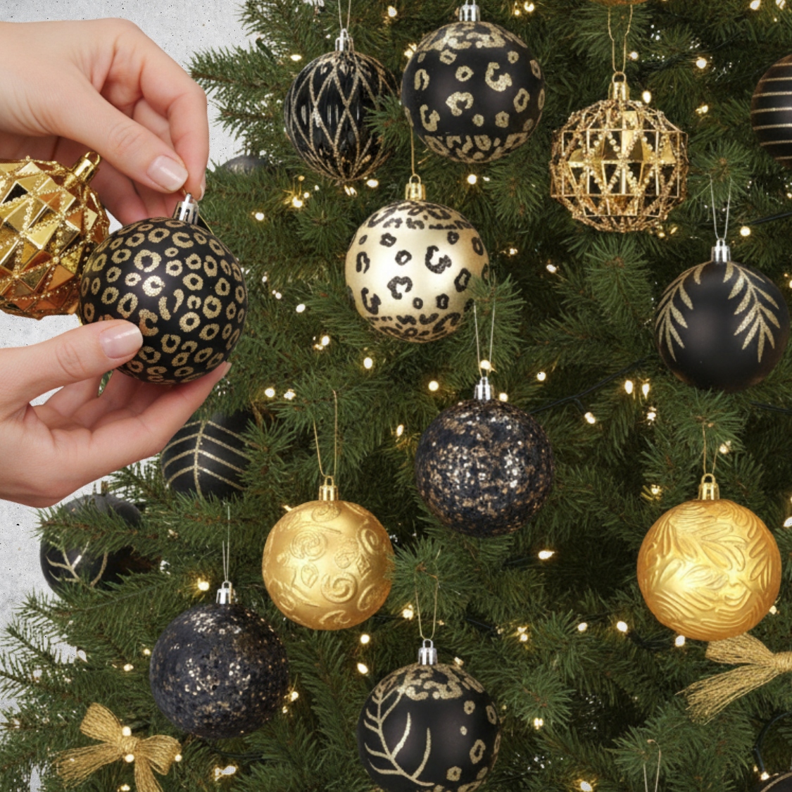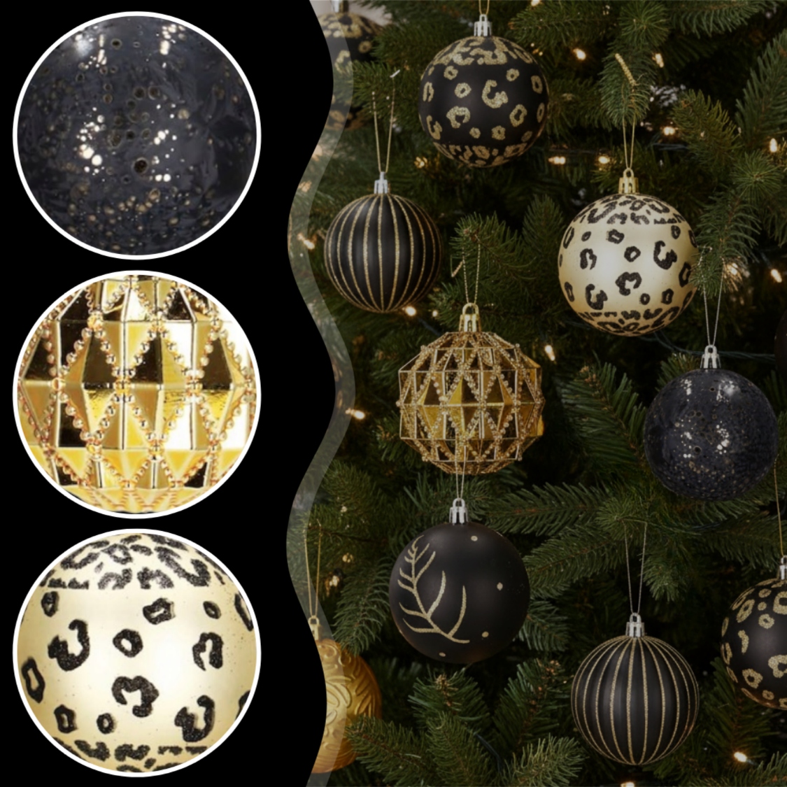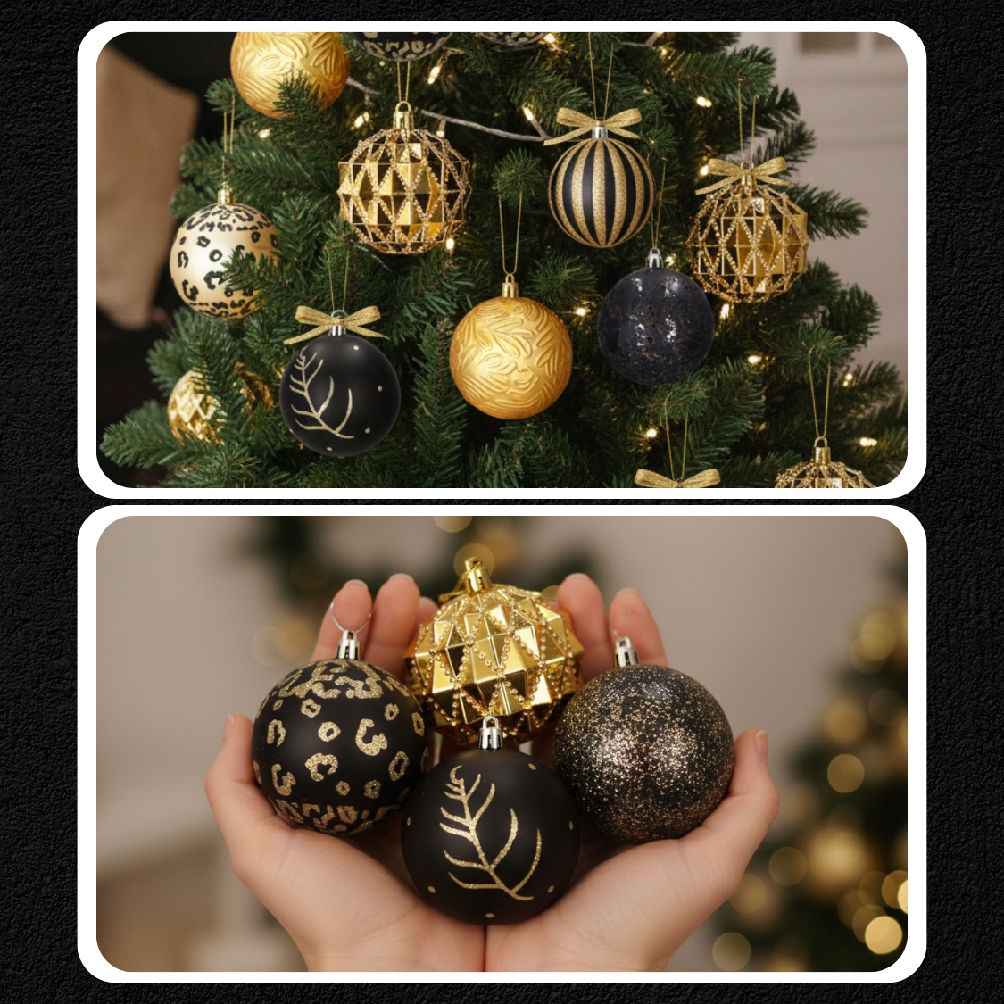 РОЖДЕСТВЕНСКИЕ ШАРЫ ДЛЯ ЕЛКИ ЗОЛОТО ЧЕРНЫЕ ОРНАМЕНТЫ УКРАШЕНИЯ 8СМ НАБОР 16ШТ.