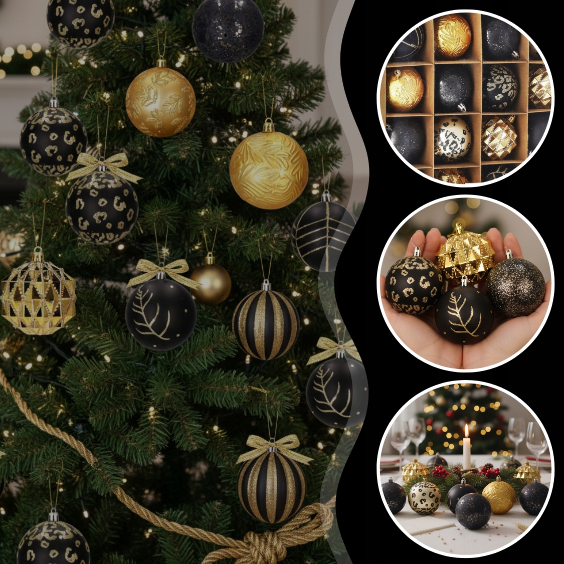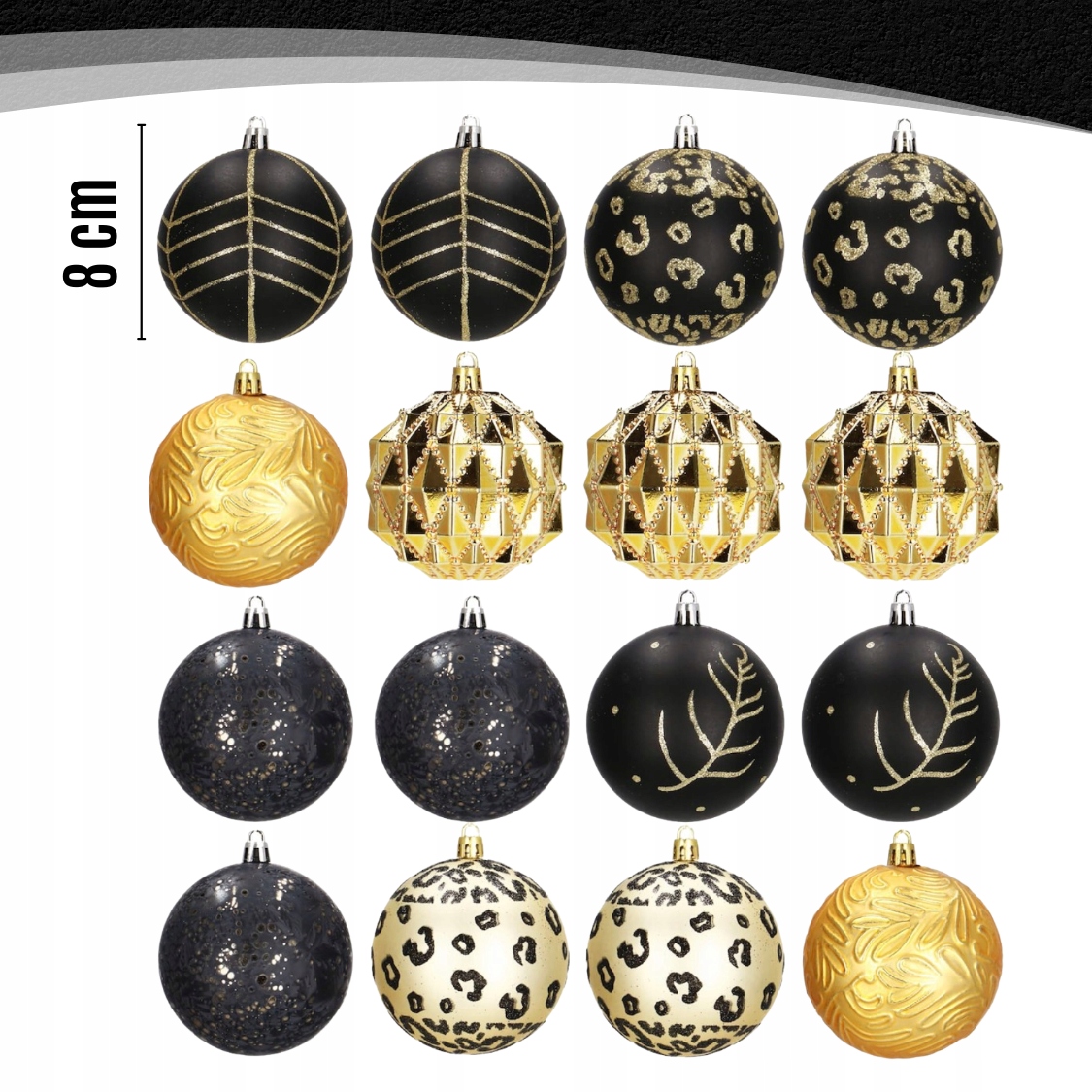 РОЖДЕСТВЕНСКИЕ ШАРЫ ДЛЯ ЕЛКИ ЗОЛОТО ЧЕРНЫЕ ОРНАМЕНТЫ УКРАШЕНИЯ 8 СМ НАБОР 16 ШТ