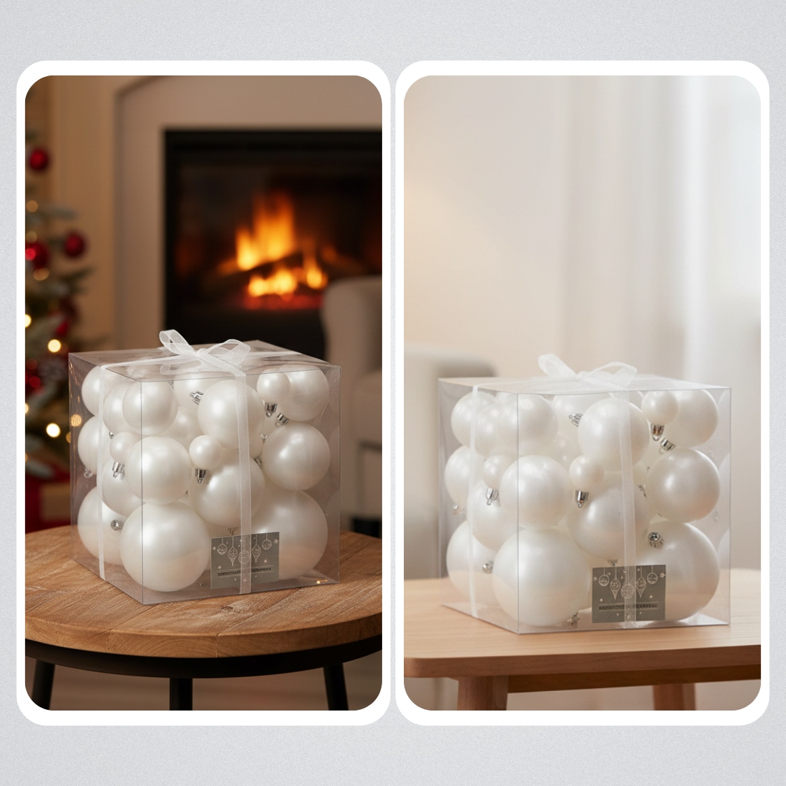 РОЖДЕСТВЕНСКИЕ ШАРЫ ДЛЯ ЕЛКИ, ЖЕМЧУГ БЕЛЫЙ, РОЖДЕСТВЕНСКИЕ УКРАШЕНИЯ НАБОР 37 ШТ