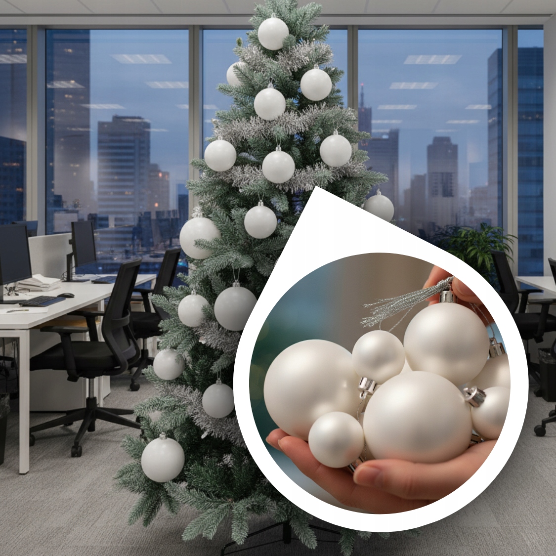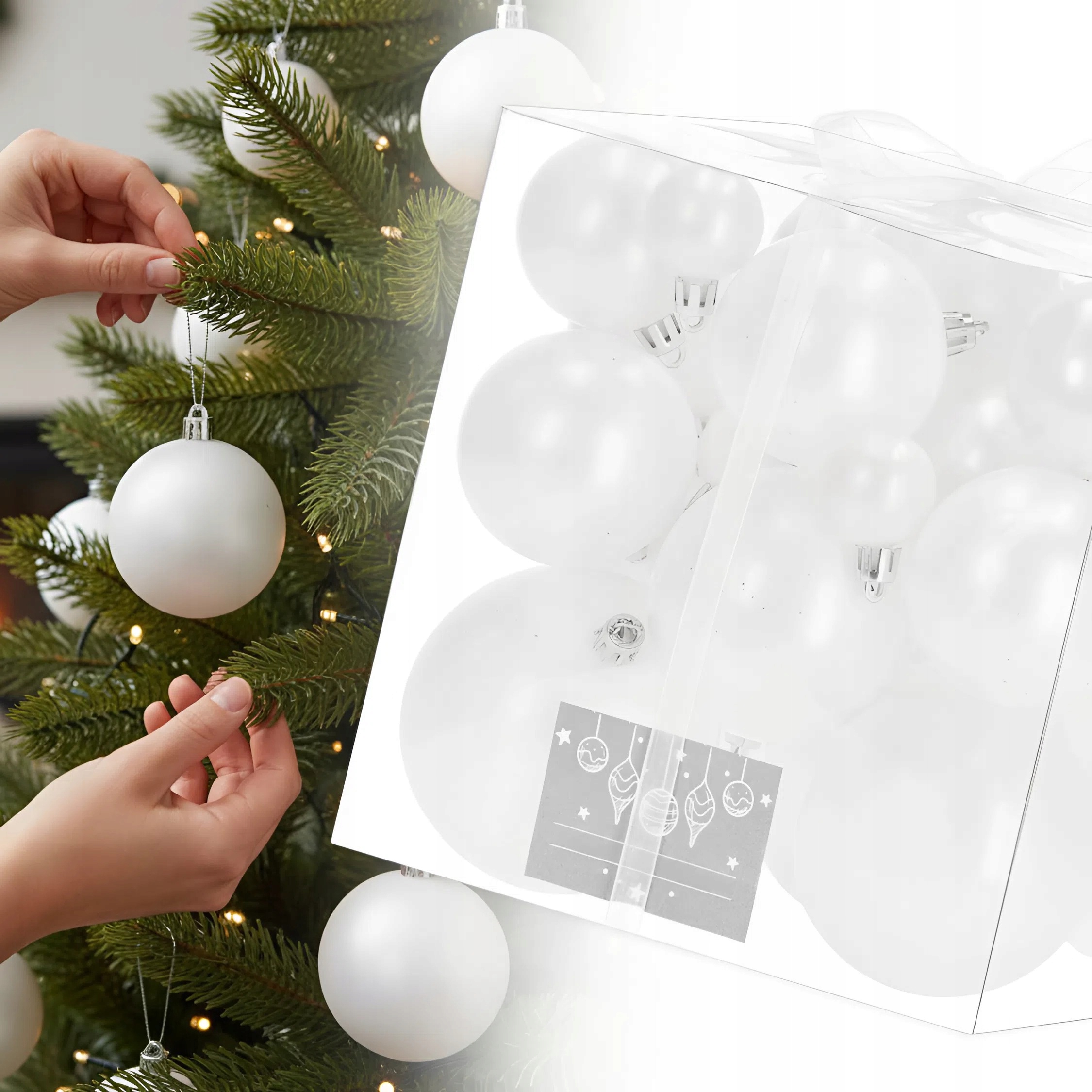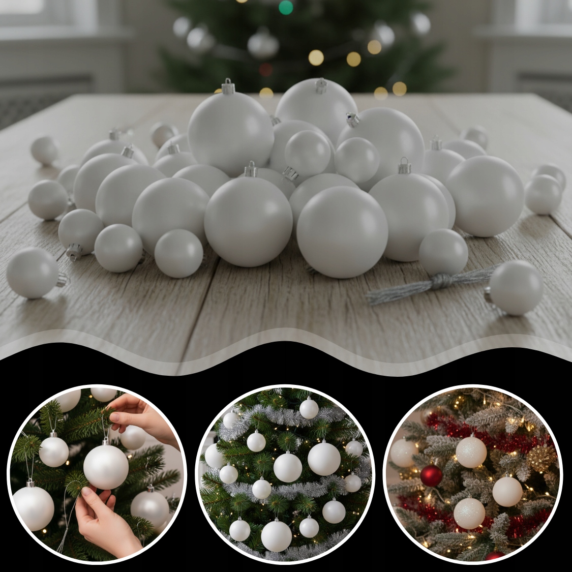 РОЖДЕСТВЕНСКИЕ ШАРЫ ДЛЯ ЕЛКИ, ЖЕМЧУЖНЫЕ БЕЛЫЕ ОРНАМЕНТЫ УКРАШЕНИЯ НАБОР 37 ШТ.