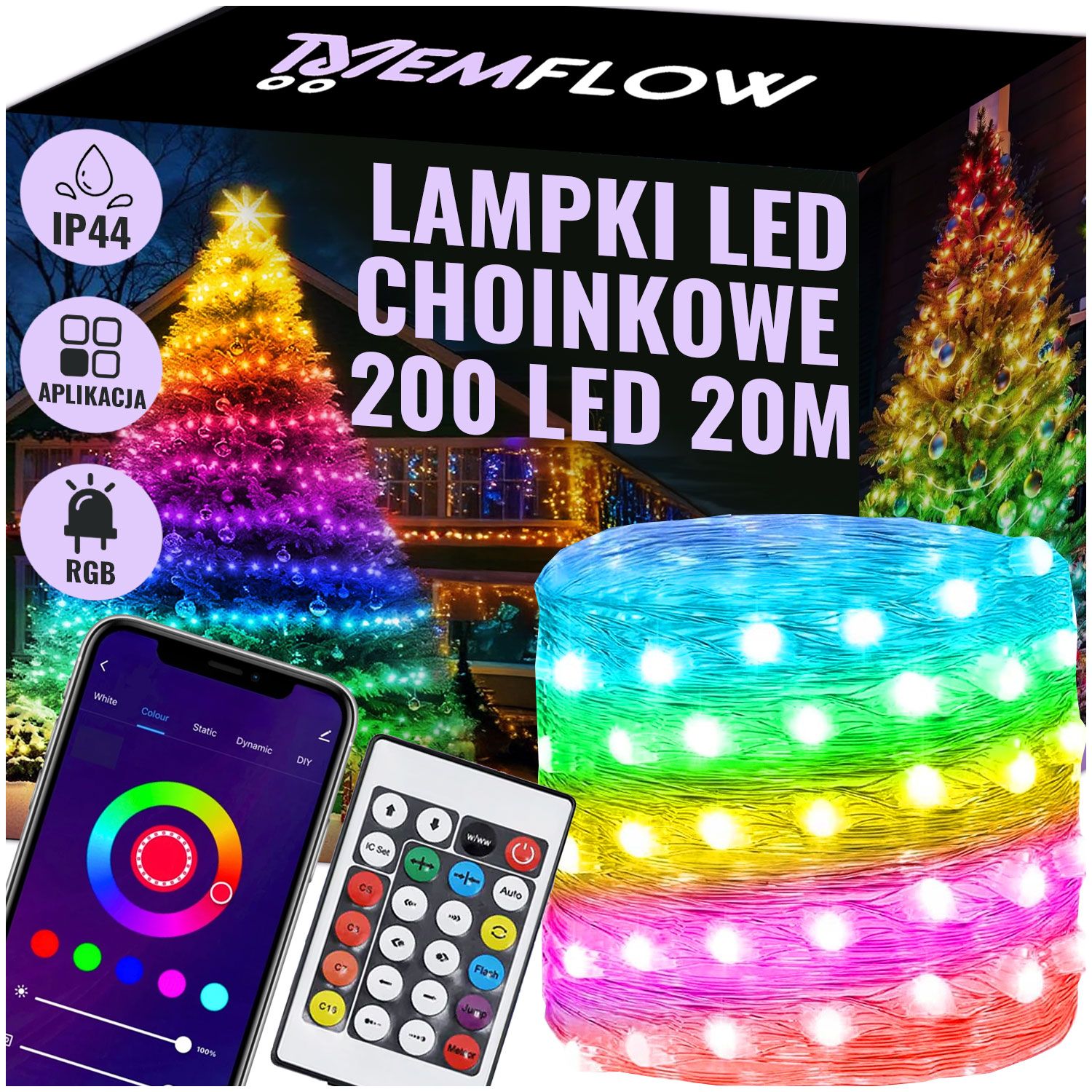РОЖДЕСТВЕНСКИЕ ЕЛОЧНЫЕ ГАРНИРЫ 200 СВЕТОДИОДНЫХ МНОГОЦВЕТНЫХ РОЖДЕСТВЕНСКИХ УМНЫХ ПУЛЬТОВ WIFI 20M