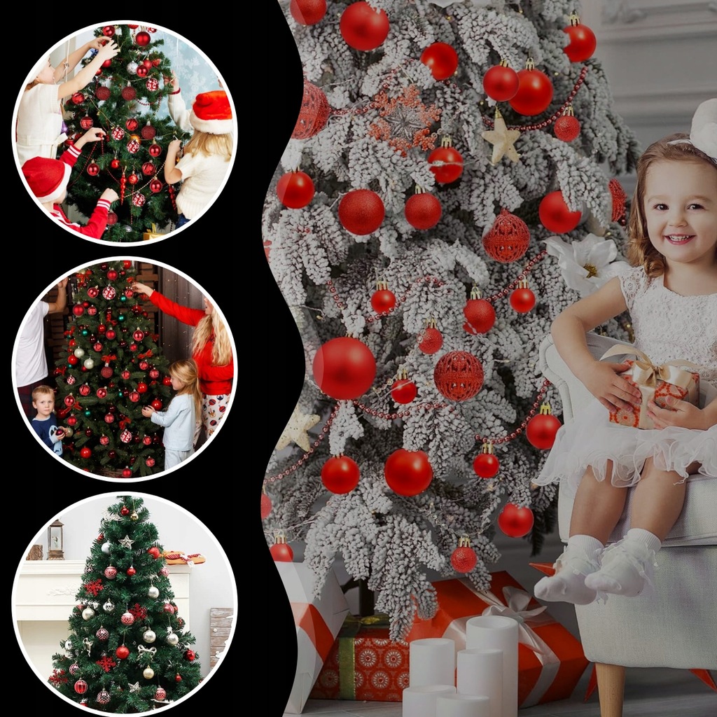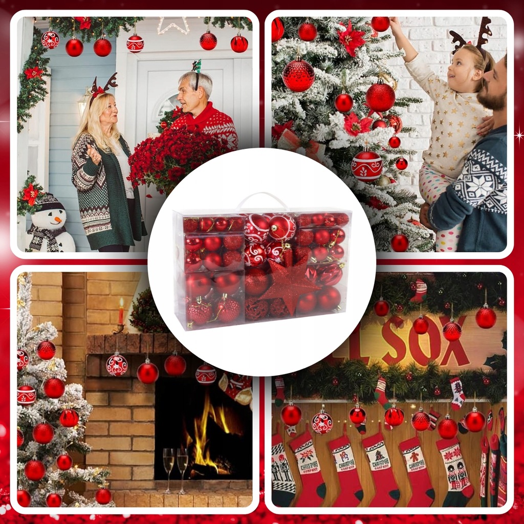 НАБОР РОЖДЕСТВЕНСКИХ ШАРОВ ДЛЯ ЕЛКИ XXL КРАСНЫЕ 100 ШТ. 6/4/3 СМ + ЗВЕЗДА