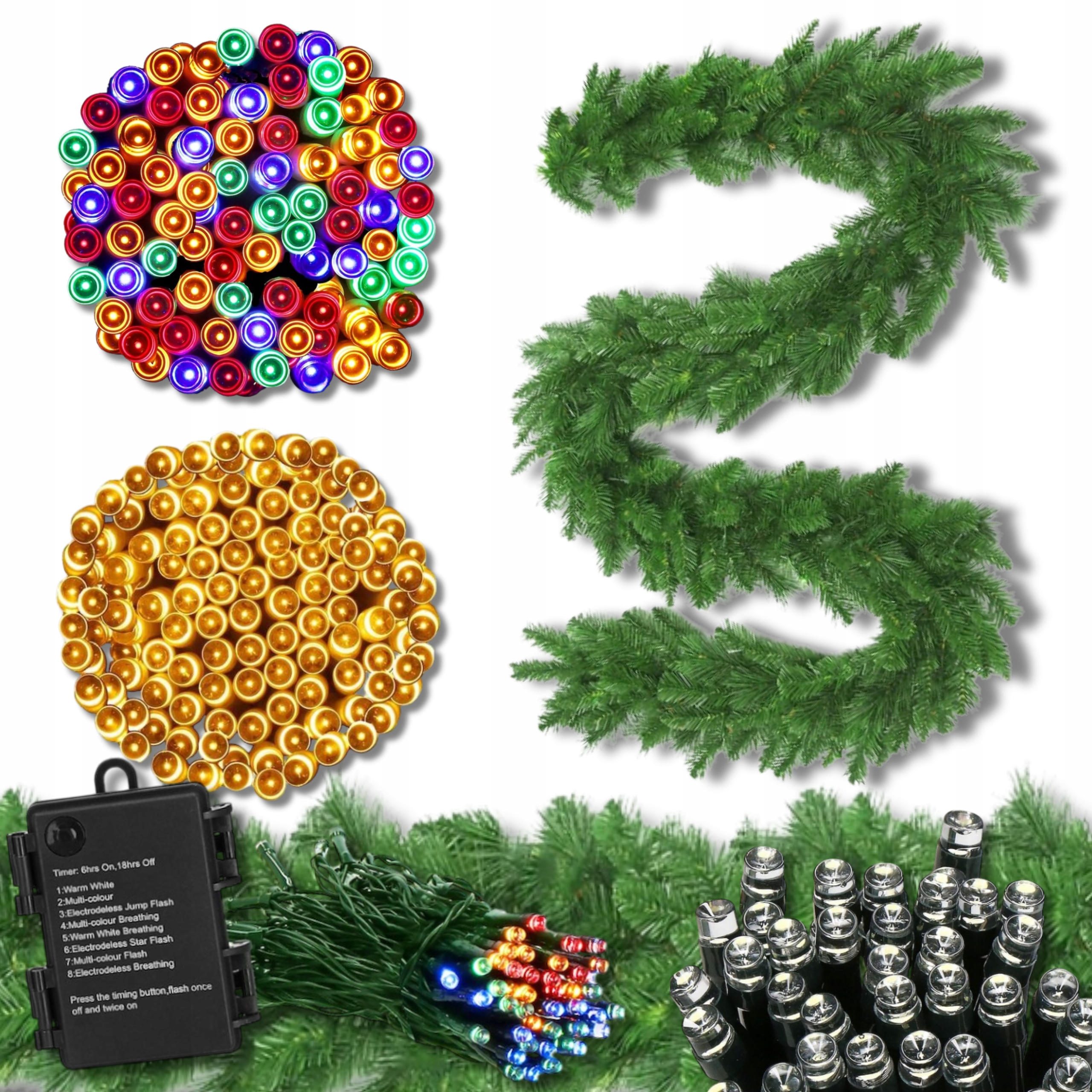 ЯЛИНОВКА ГІРЛЯНДА 300 СМ + 50 LED РІЗНОКОЛЬОРОВИХ ЛАМПАНІКІВ Бонус