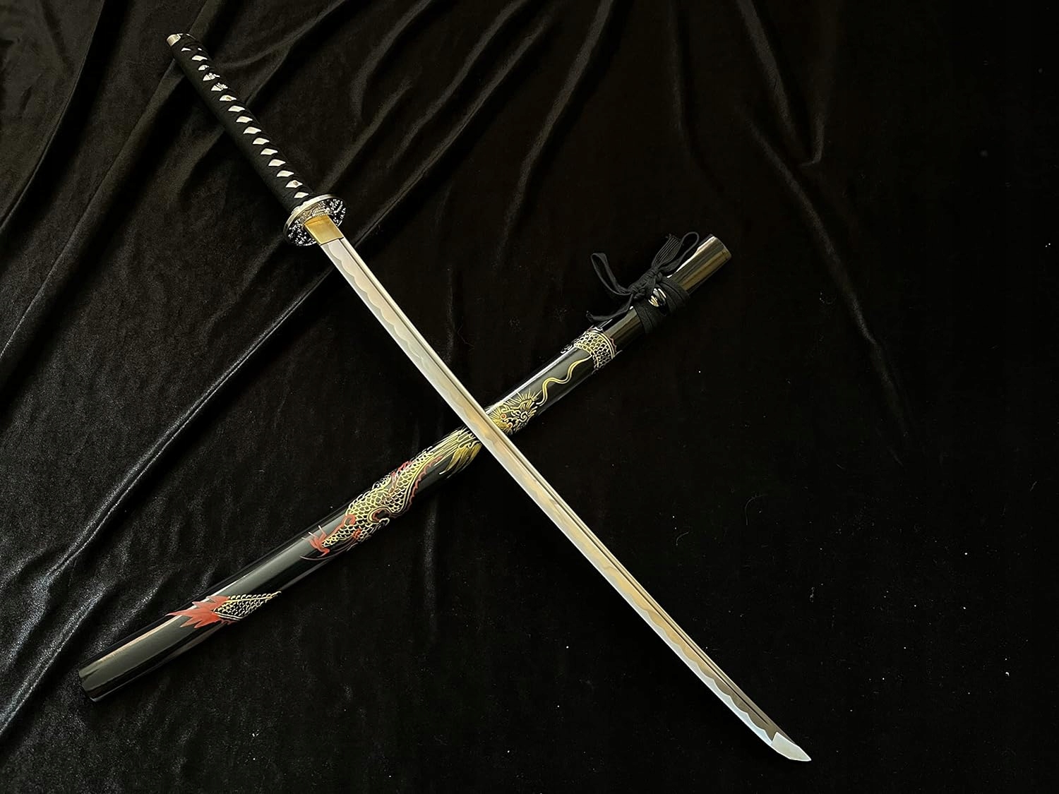 ✅ НОЖНИ/ САЯ: твердая древесина - лакированная хлопчатобумажная тесьма КРАСИВЫЙ МОТИВ ДРАКОНА НА НОЖНАХ