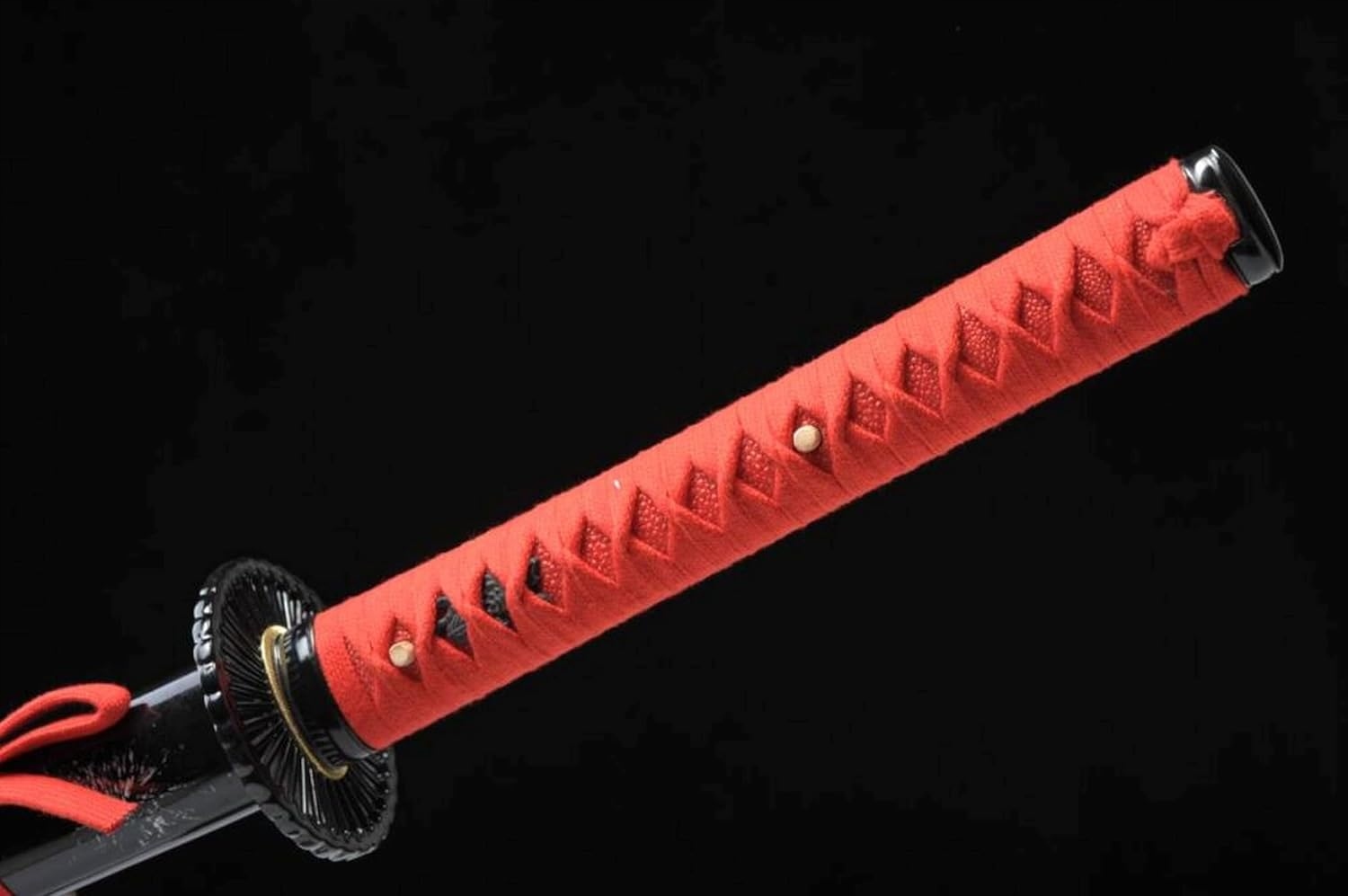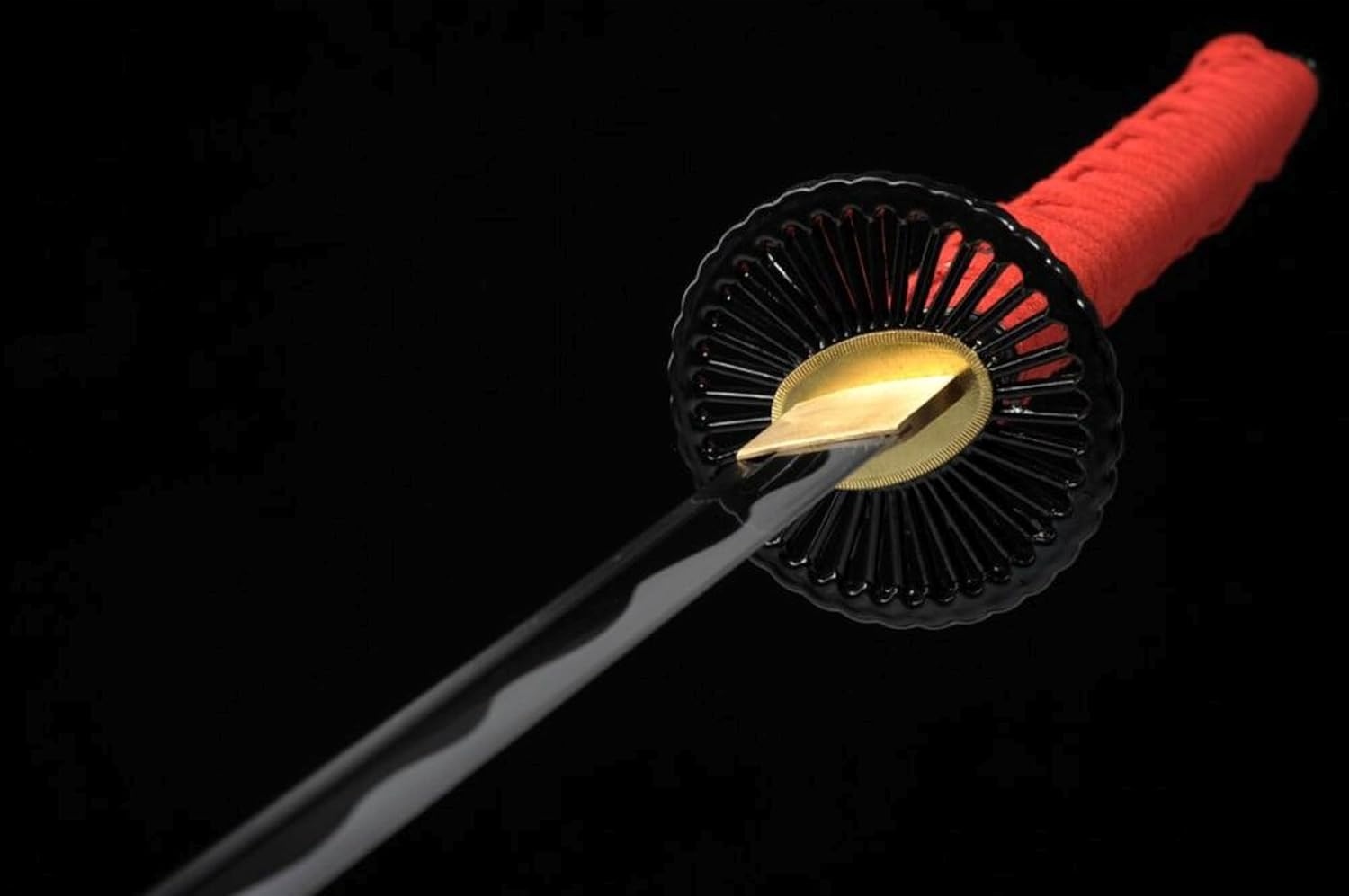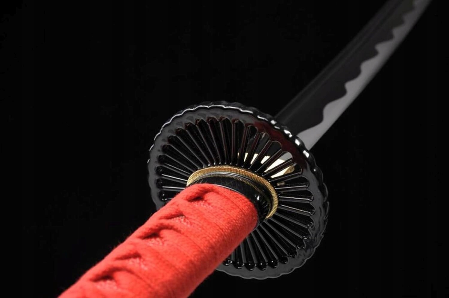 Эта катана была изготовлена в небольшой кузнице с использованием только традиционные техники изготовления доспехов и оригинальные материалы. Рукоять состоит из двух кусков твердой древесины японской магнолии, склеенных рисовым клеем и покрытых кожей ската. У него есть кольцо, называемое фучи, со стороны рукоятки, и воротник, закрывающий лезвие у основания рукоятки, называемый хабак. Цуба – дисковая ручка из цветных металлов, богато декорированная. Изогнутый клинок выкован кузнецами из стали 1060 по технологии, передаваемой из поколения в поколение.