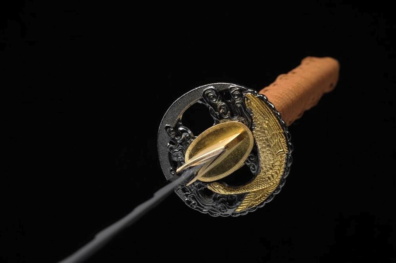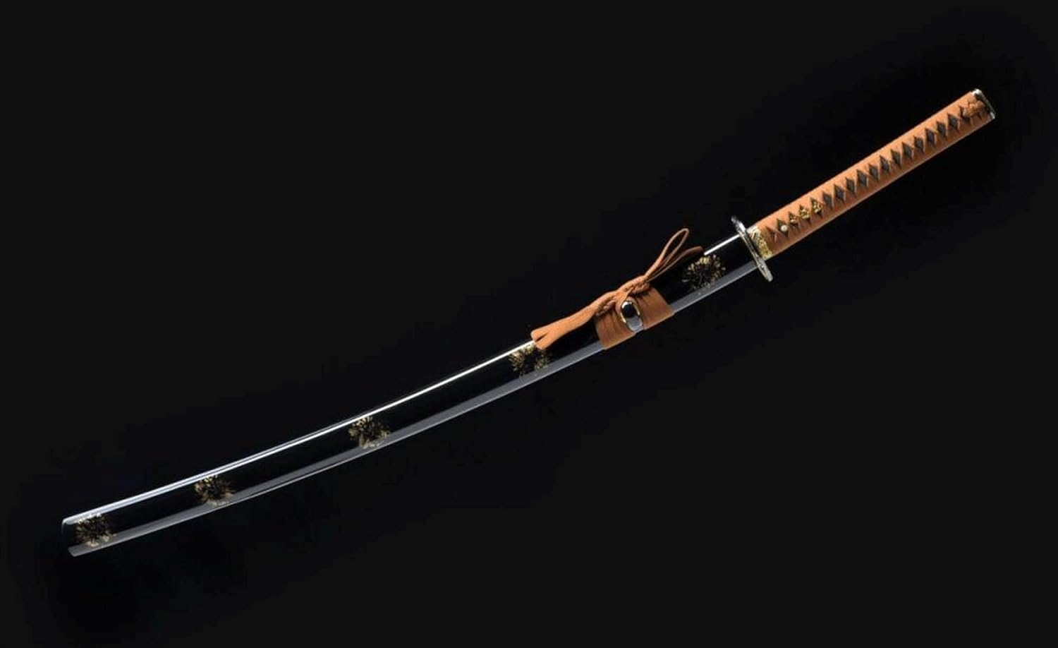 Эта катана была изготовлена в небольшой кузнице с использованием только традиционные техники изготовления доспехов и оригинальные материалы. Рукоять состоит из двух кусков твердой древесины японской магнолии, склеенных рисовым клеем и покрытых кожей ската. У него есть кольцо, называемое фучи, со стороны рукоятки, и воротник, закрывающий лезвие у основания рукоятки, называемый хабак. Цуба – дисковая ручка из цветных металлов, богато декорированная. Изогнутый клинок выкован кузнецами из стали 1060 по технологии, передаваемой из поколения в поколение.