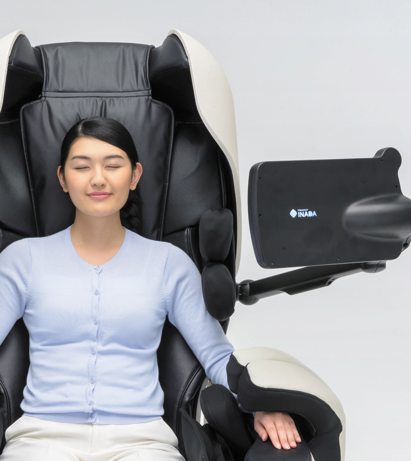 Последний результат работы инженеров Family INADA — Therapina ROBO — уже не кресло, а робот-терапевтический массажер, выполняющий процедуры с учетом физического состояния каждого пользователя, с помощью Алгоритм искусственного интеллекта и робототехника «человеческие руки». Под человеческими руками следует понимать уникальное воспроизведение работы сухожилий пальцев терапевта, что создает чрезвычайно приятное и естественное ощущение массажа.