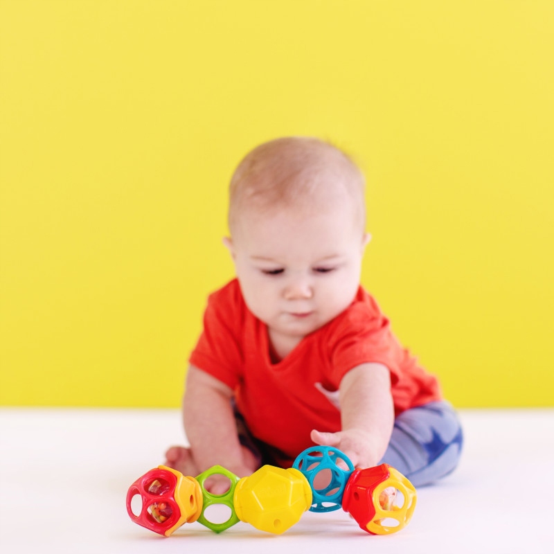 Необыкновенный Oball Twister — щелкайте, вращайте в разные стороны, трясите и гремите! Это погремушка, не похожая ни на одну из тех, что вы видели раньше, но не только это... каждый разноцветный шарик вращается в обоих направлениях с веселым щелканием и создает длинную веревку с цепной реакцией веселья, чтобы обнаружить причину и следствие! Ваш ребенок потратит много времени, открывая новые способы маневрирования этой игрушкой, чтобы издавать разные звуки, одновременно тренируя ловкость и навыки манипулирования. Уникальный дизайн Oball позволяет легко захватывать его крошечными ручками, а также его можно использовать в качестве прорезывателя для зубов.