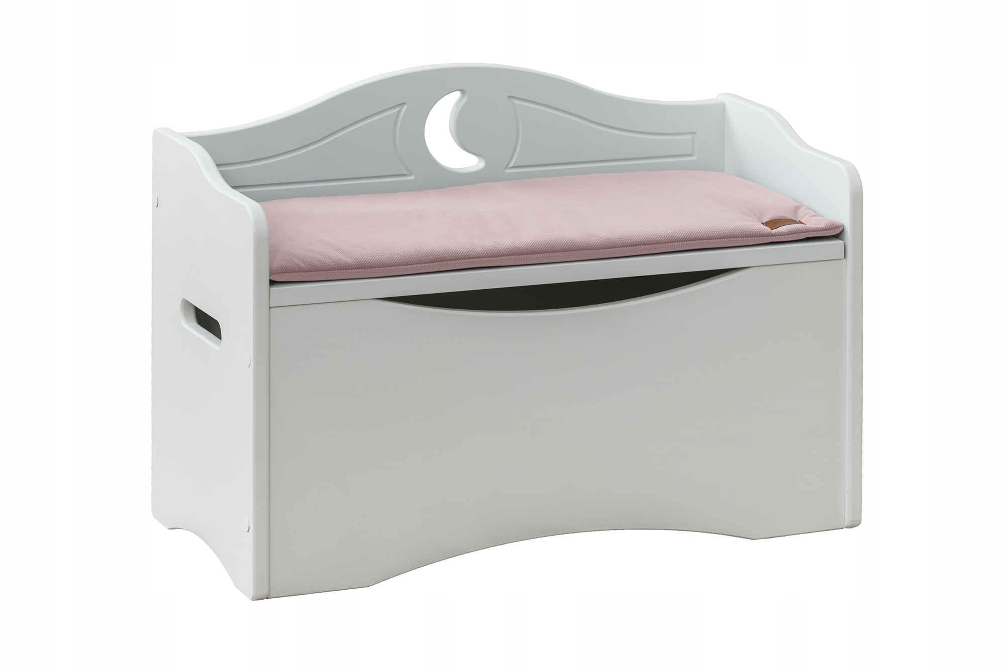 Шкатулка имеет ручки по бокам для удобства переноски, дополнительно отделана красивыми фрезами и лунным мотивом. Сундук можно использовать и как сиденье, скамейку для детской комнаты, и как место для хранения вещей.