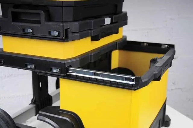 Тележка для мастерских 1-96-621 Stanley облегчит хранение и транспортировку инструментов и принадлежностей. Это предложение для мобильных профессионалов. Структуру мастерской Stanley можно разделить на три сегмента: съемный ящик с лотком для инструментов, глубокий ящик на шариковых направляющих и выдвижной металлический контейнер для крупных и тяжелых инструментов. Оборудование каждого сегмента можно настроить под свои нужды.