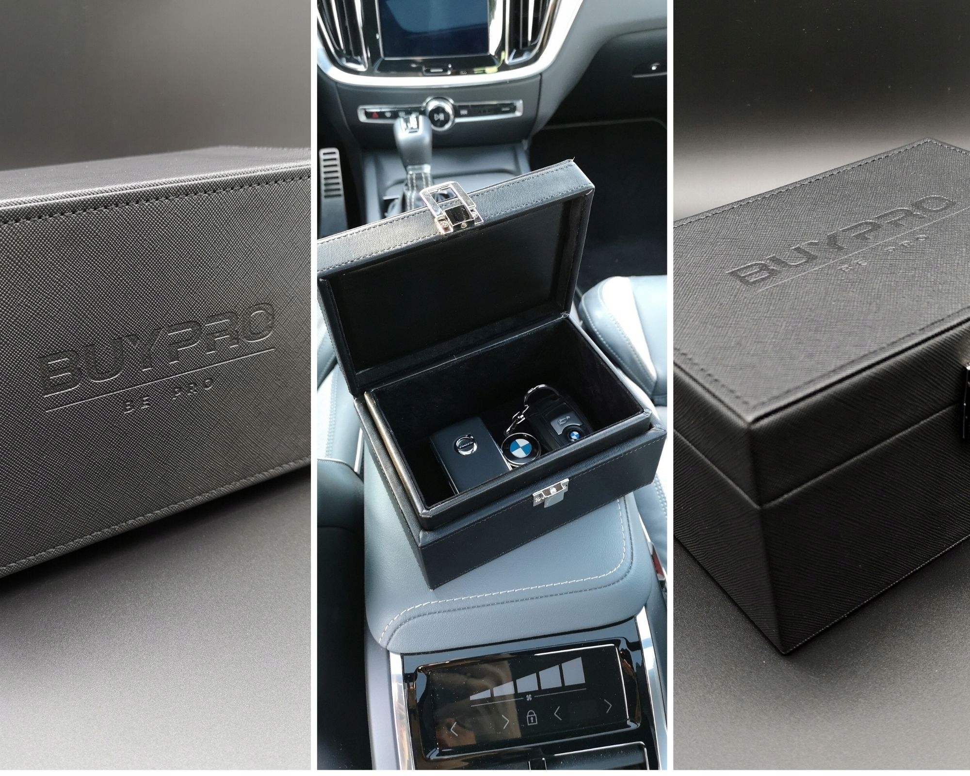 BUYPRO BOX - Внутренний слой ключницы выполнен по технологии Twin Pro. Ящик с замком изготовлен из высококачественной кожи, которая удобна и не скользит. Внутренняя часть выполнена из высококачественной защитной ткани. Использование технологии RFID и конструкции с двойным замком обеспечивают более надежную защитную функцию. Внутренний слой выполнен из дерева. Благодаря этому ящик с замком не только прочный и элегантный, но и подходит для мобильных телефонов (уточняйте размеры, телефон должен лежать ровно), часов, биометрических идентификаторов, паспортов, кредитных, дебетовых карт и т. д.