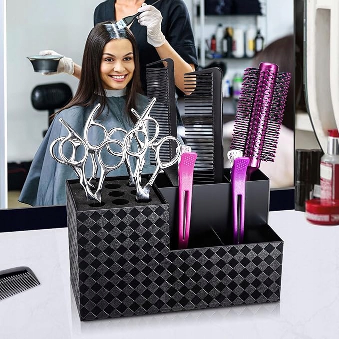 【Все необходимое для стилиста】 — в коробке ножницы, заколки, расчески и щетки для волос будут организованы. При этом стилисты могут легко достать все необходимое во время работы.