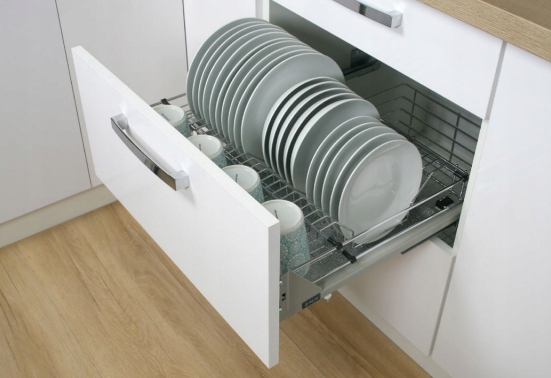 Ящик с подшивкой для тарелок – удобное и практичное дополнение к оборудованию современной кухни. В нем можно хранить до 30 кг посуды.