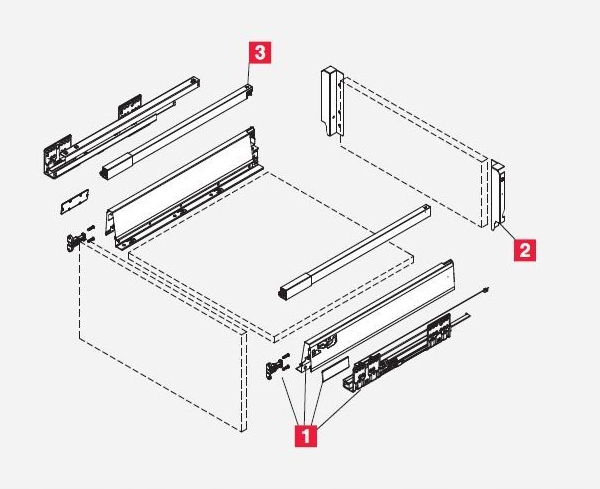 В комплект не входят передняя, нижняя и задняя части ящика.