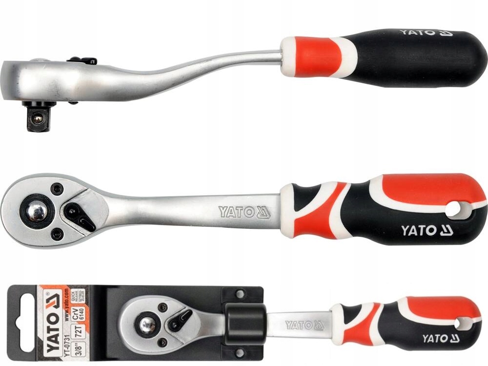 ИЗОГНУТАЯ ТРЕЩОТКА YATO ДЛЯ НАСАДОК 3/8" CRV СТАЛЬ 200 ММ STRONG YT-0731