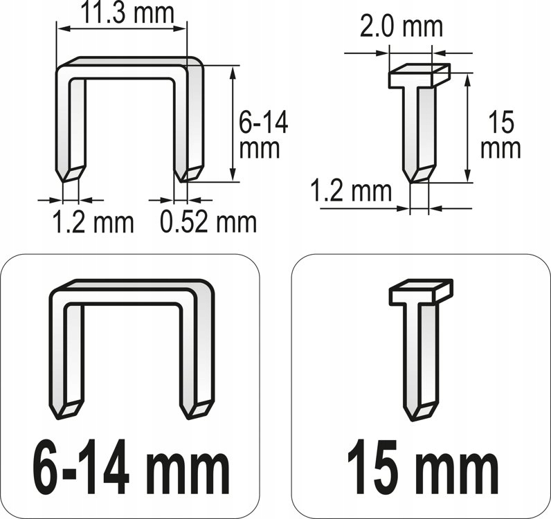 - размеры скоб: 6-14 x 1,2 x 11,3