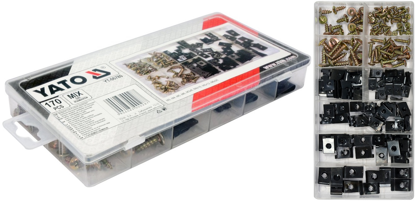 Набор состоит из 170 кусочков винтов и прокладки кузова, размер от M3x8 мм до M6x20 мм. Тип "Сортировщик"
