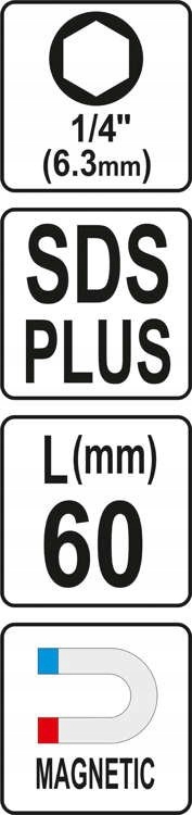ШЕСТИГРАННЫЙ АДАПТЕР YATO SDS PLUS ДЛЯ БИТ 1/4'' YT-04690