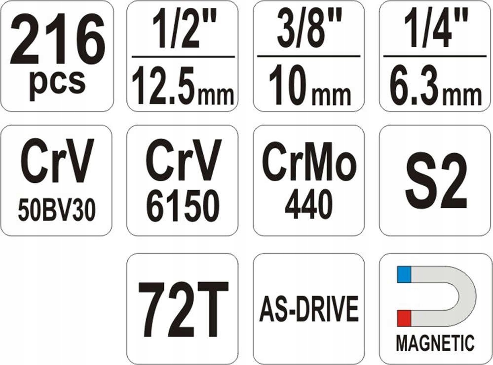 YATO YT-38841 НАБОР ИНСТРУМЕНТОВ 216 ЭЛЕМЕНТОВ 1/4", 3/8" и 1/2"