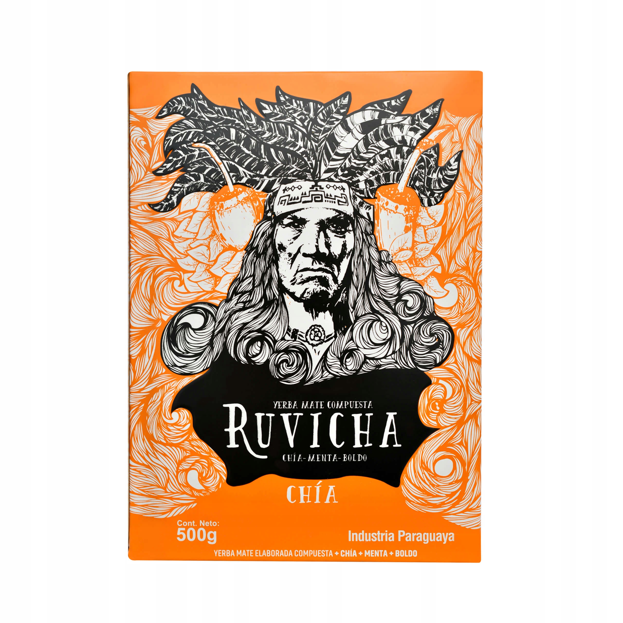 Рувича Чиа родом из Парагвая, от молодого, динамично развивающегося бренда Ruvicha, основанного в 2016 году. Упаковано в пакет и коробку, с характерным изображением грозного вида индейца гуарани. Это классический парагвайский мате - крепкий вкус, дымный аромат, со 100% натуральными добавками: семенами чиа, мятой и болдо. Травяной аромат сохраняется, как только вы впервые открываете упаковку, и сохраняется, когда вы заливаете траву водой. Семена испанского шалфея, обычно называемые чиа, богаты витаминами и минералами, ценными для здоровья. Травяные добавки придают композиции свежесть - отлично работает как в теплом, так и в холодном варианте - терере.