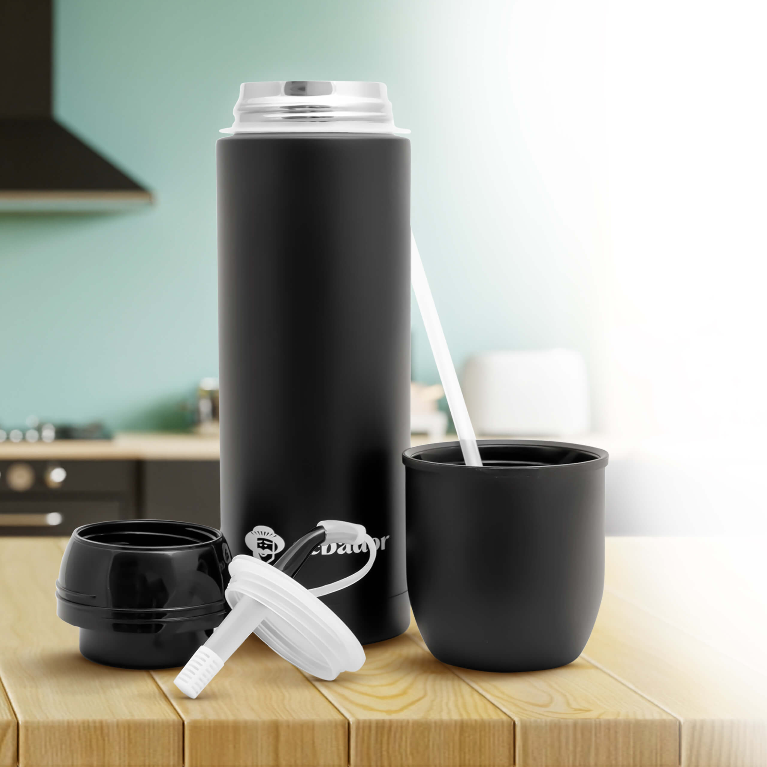 Ербомос ВСЕ В ОДНОМ выглядит как термос и фактически выполняет эту роль благодаря резервуару для воды с двойными стенками из нержавеющей стали, которые позволяют поддерживать температуру жидкости внутри до нескольких часов >! При этом, в отличие от обычных термососудов, аксессуар оснащен трубкой и специальным резервуаром для трав. Просто положите туда мате, любимые травы или чай, налейте туда воду, и через несколько мгновений вы приготовите чудесный ароматный настой без гущи (она удержится специальным ситечком)!