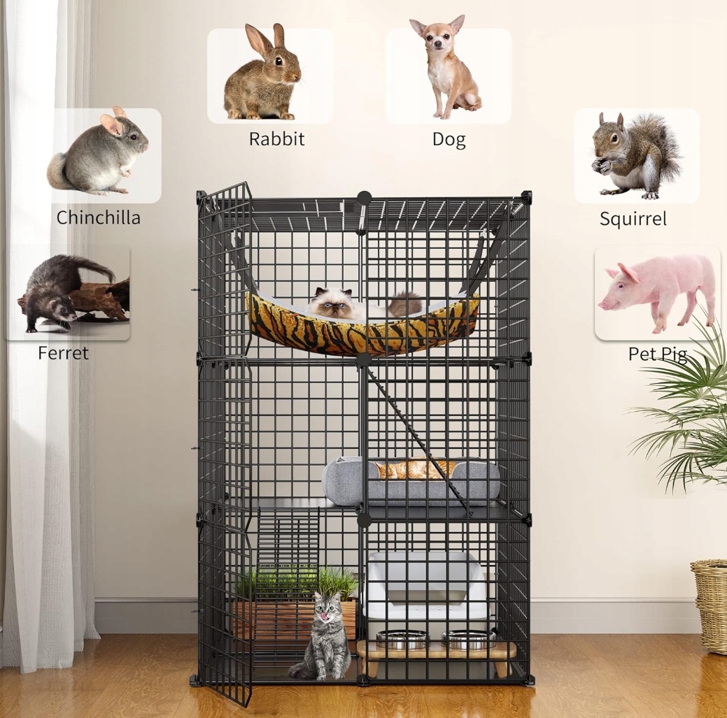 - ✴️Просторный, удобный и прочный - размеры (72 x 72 x 104) см, этот кошачий бокс обеспечивает достаточно места для игр и отдыха 1-2 кошек. Он имеет 3 входные двери, 2 лестницы и потолочное окно для уборки, входа, кормления и комфортного общения. Эта клетка для кошек повышает устойчивость вашей клетки для кошек за счет усиления соединения между пандусом и платформой, чтобы обеспечить безопасность ваших питомцев.