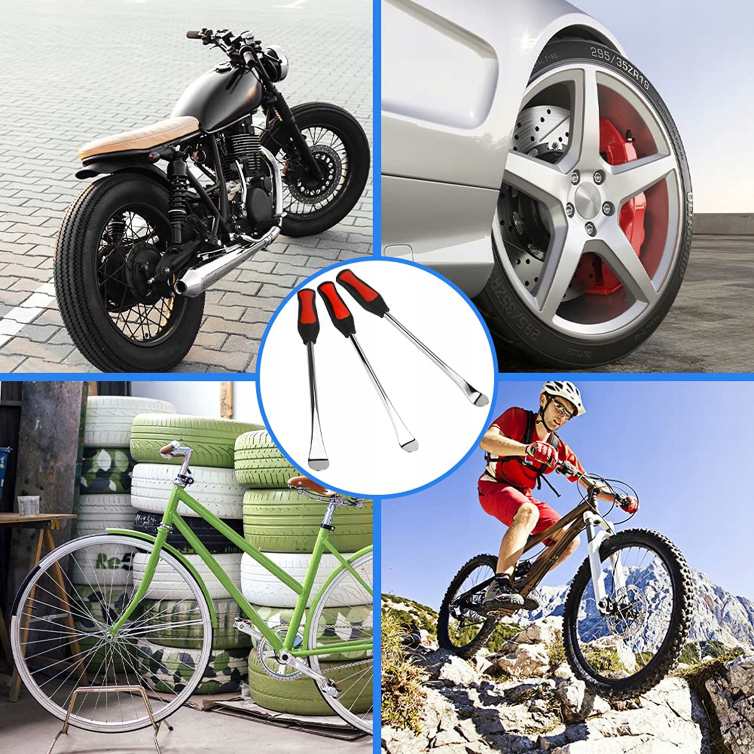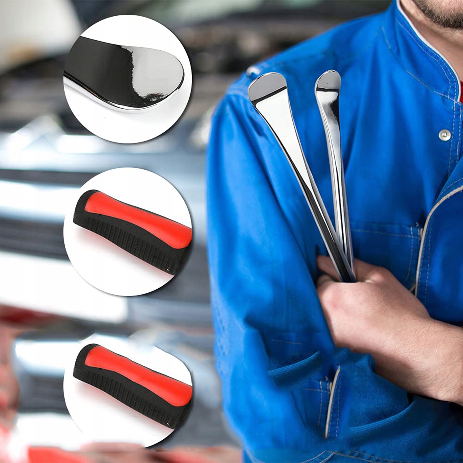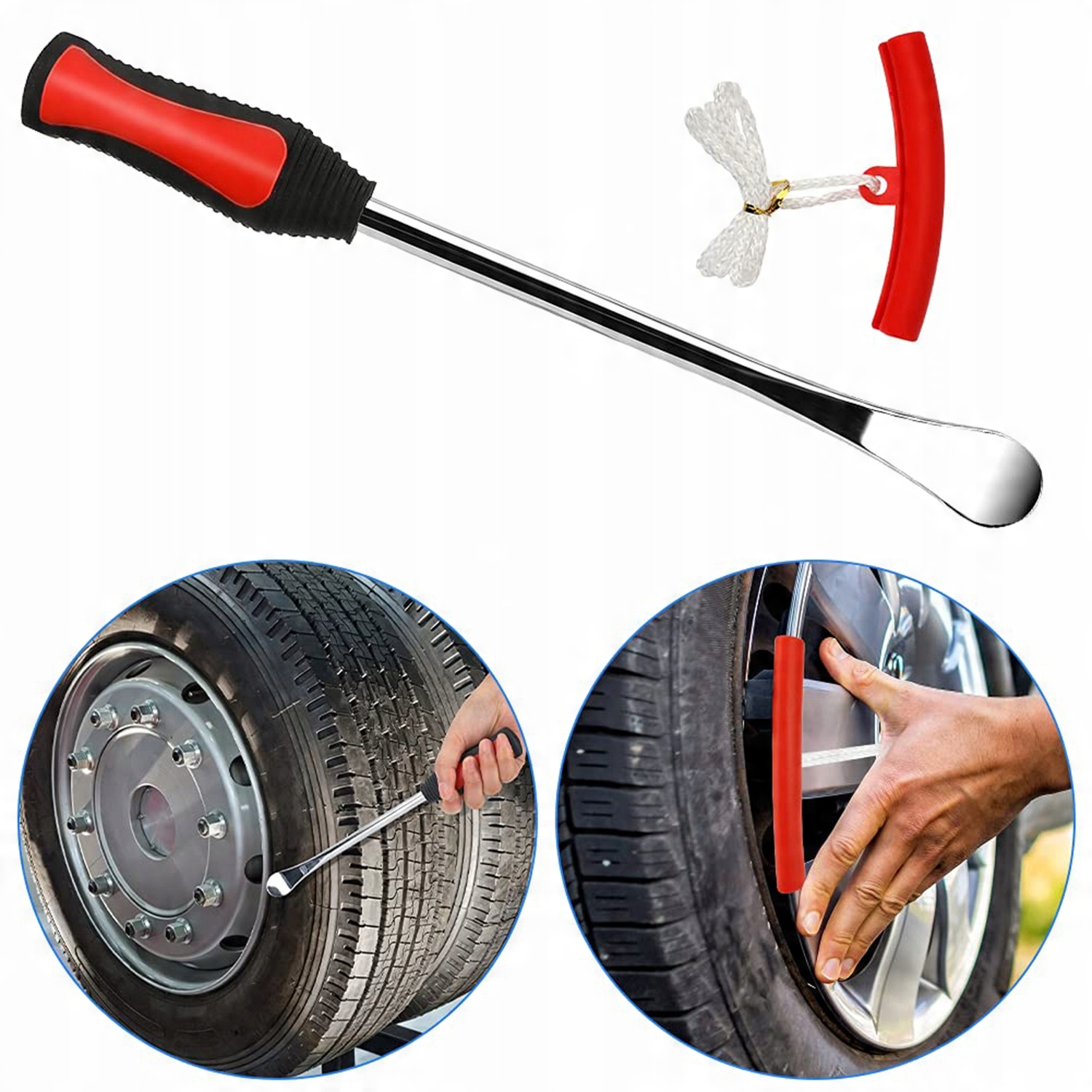 【Высококачественный материал】 Набор инструментов для шиномонтажа изготовлен из стали, красивого полированного хрома, надежен против ржавчины, погодных условий и долговечен.