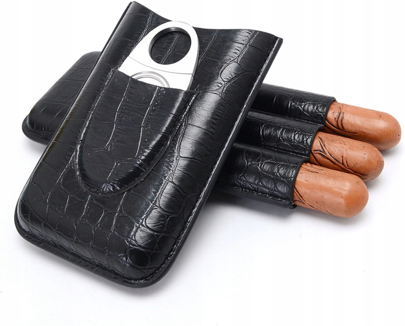 Изготовлен из высококачественной искусственной кожи (не натуральной кожи, искусственной/искусственной кожи). ) - Роскошный портсигар вмещает 3 сигары. Достаточно места для трех 52-кольцевых сигар. - Портативный футляр: идеально подходит для путешествий, его можно взять с собой в ресторан, на встречу или в гольф. Прочная конструкция обеспечивает надежную защиту ваших сигар. -В комплект входит нож для сигар из нержавеющей стали и черный бархатный мешочек, сигары на картинке в комплект не входят. - Идеальный подарок для жениха. Милый и прекрасный подарок