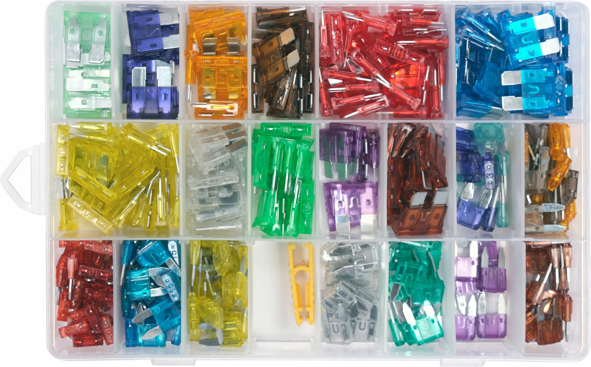 - Содержимое набора: х300 предохранителей (мини: 2А х6, 3А х6, 5А х12, 7,5А х10, 10А х28, 15А х24, 20А х22, 25А х10, 30А х14, 35А х6, 40А х12;