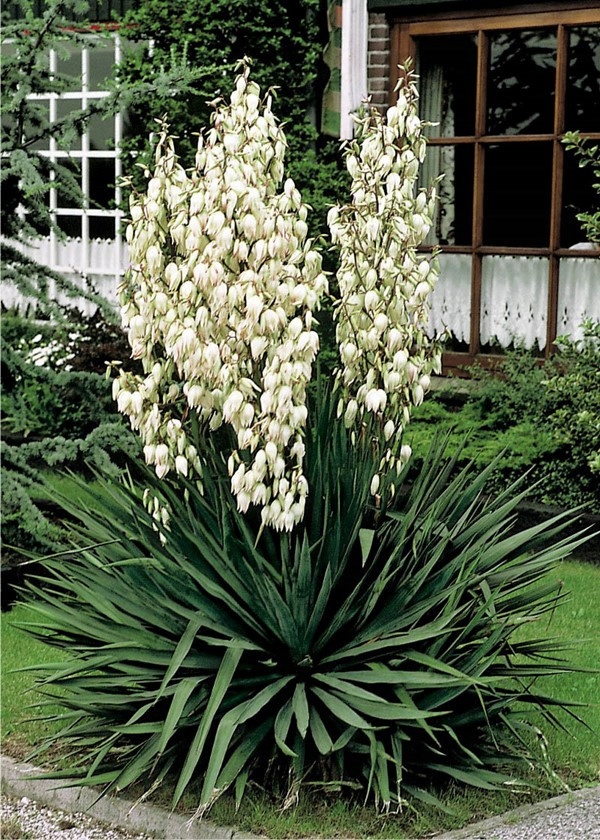 Юкка Каролинская (Yucca filamentosa) – многолетнее растение, принадлежащее семейству Спаржевые. В природе встречается в США, где населяет редколесья, пустыри и обочины дорог. Во многих странах мира широко культивируется как декоративное растение. Он образует комки толстых, жестких листьев мечевидной формы. Обычно они вырастают до 30-40 см в высоту. В конце весны или лета юкка выпускает длинный соцветие-побег (до 150 см), состоящее из мелких колокольчатых кремово-белых цветков. Период цветения обычно приходится на рубеж июня и июля. У растения есть дополнительные названия: мочковатая шишка и мочковатая шишка.