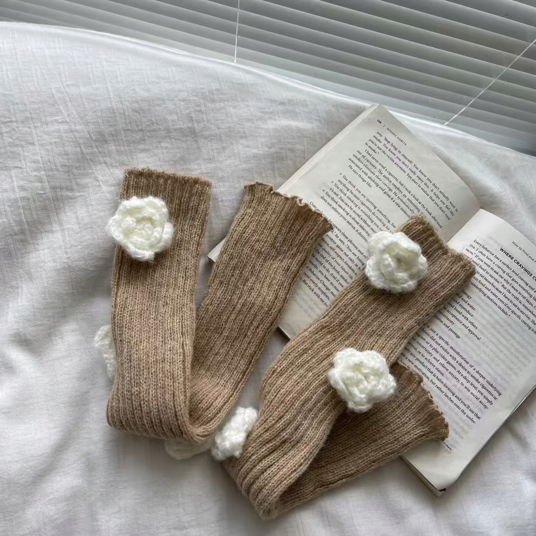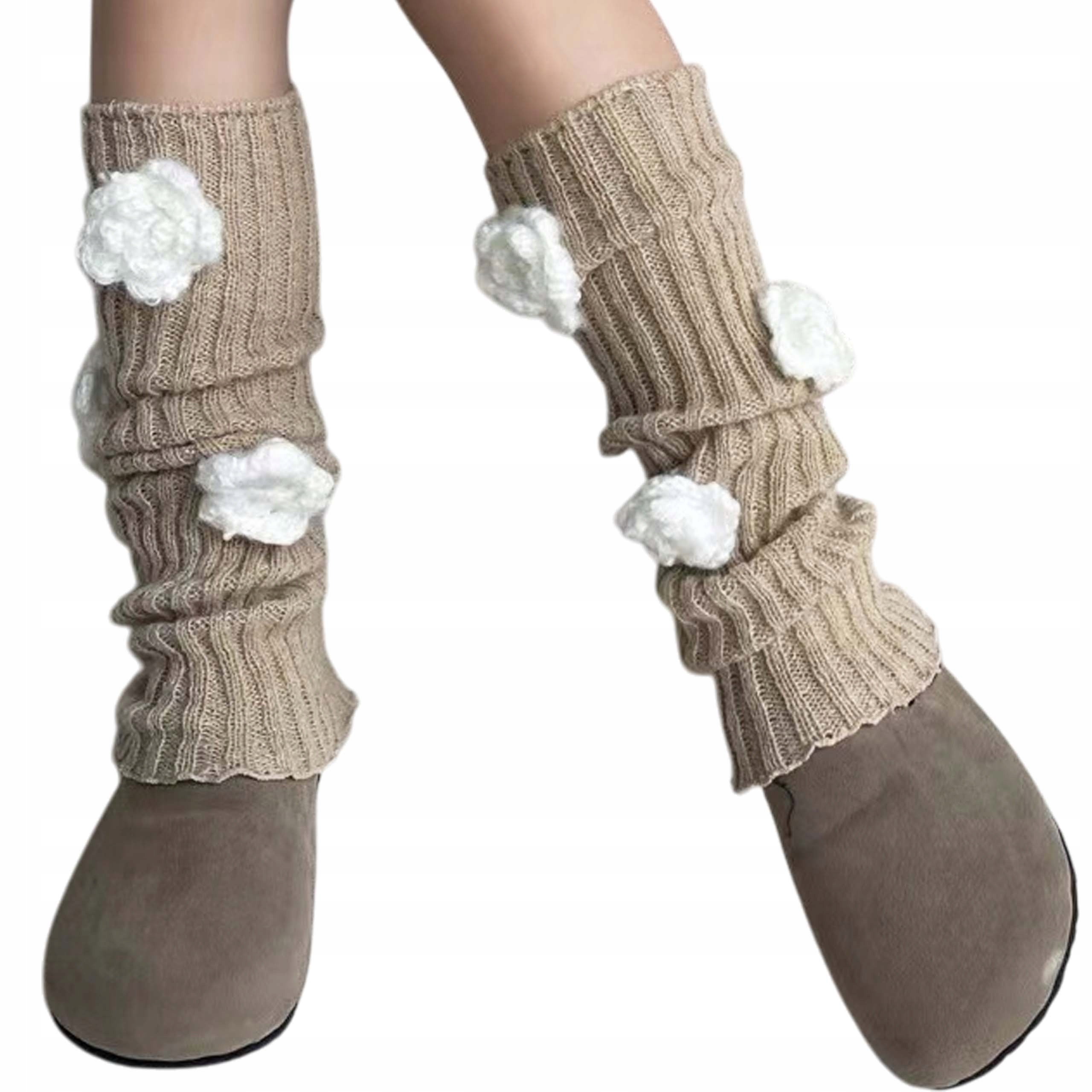 Симпатичные Венерамеры в цвете легкой карамели, украшенной белыми цветами , являются привлекательными дополнение к стилю, что не только сделает нас теплее, но также и интересным образом украсить наши ноги.