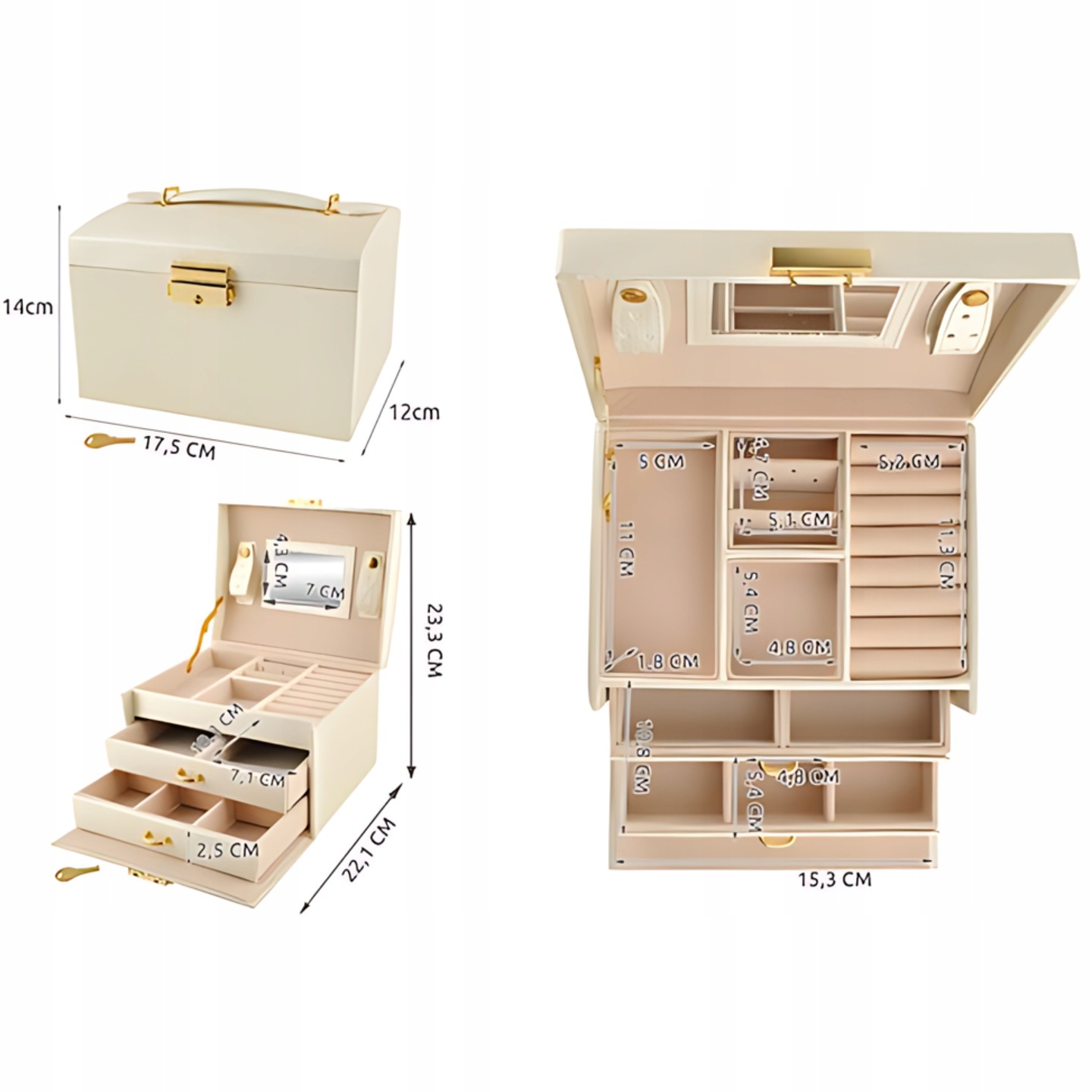 У вас есть проблема с поддержанием порядка в ваших украшениях? Наша элегантная бежевая коробка поможет вам контролировать хаос! Благодаря этому все серьги, браслеты, часы и кольца найдут их место.