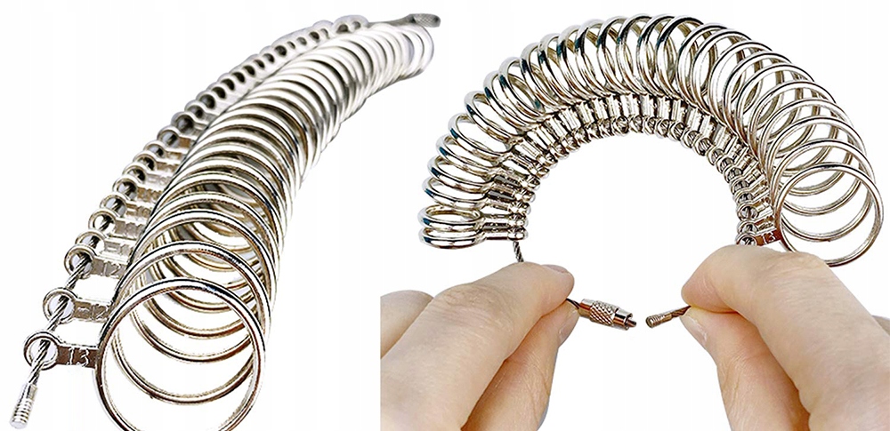 Мера кольца объединяет четыре стандарта размера: американский (размеры 2–15, включая размер 1/4), гонконгский (HK), японский (m/m∮) и европейский (CU), что отвечает потребностям измерения размеров колец во всем мире.