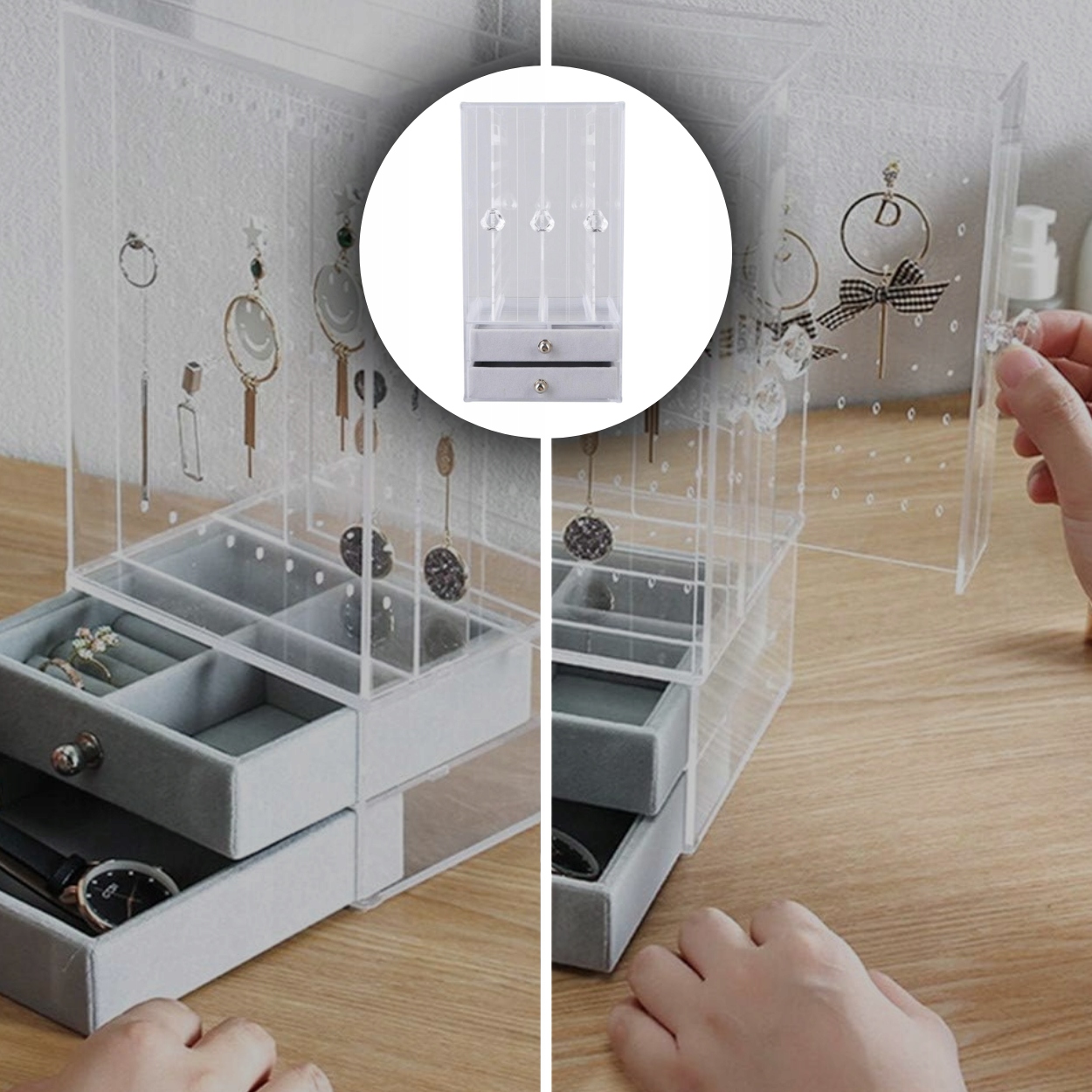 Позволяет легко видеть содержимое ящиков, не открывая их, что ускоряет подбор подходящих украшений.