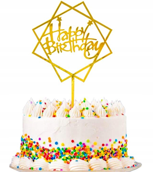 Элегантный декоративный золотой топпер «С Днем Рождения». Это, несомненно, красивое декоративное дополнение к праздничному торту.