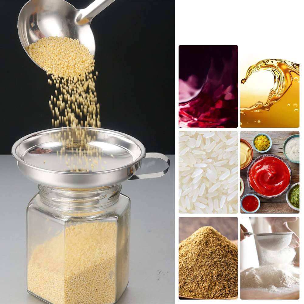 【Простота в эксплуатации】Воронка из нержавеющей стали подходит для банок для специй, бутылок, банок с широким горлышком и аналогичных емкостей. Его широкое отверстие позволяет легко загружать крупные предметы в банки Mason с широким горлышком.