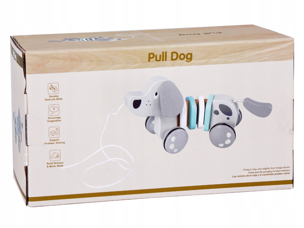 ZABAWKA DO CIĄGNIĘCIA NA SZNURKU PIESEK SZARY DREWNIANA