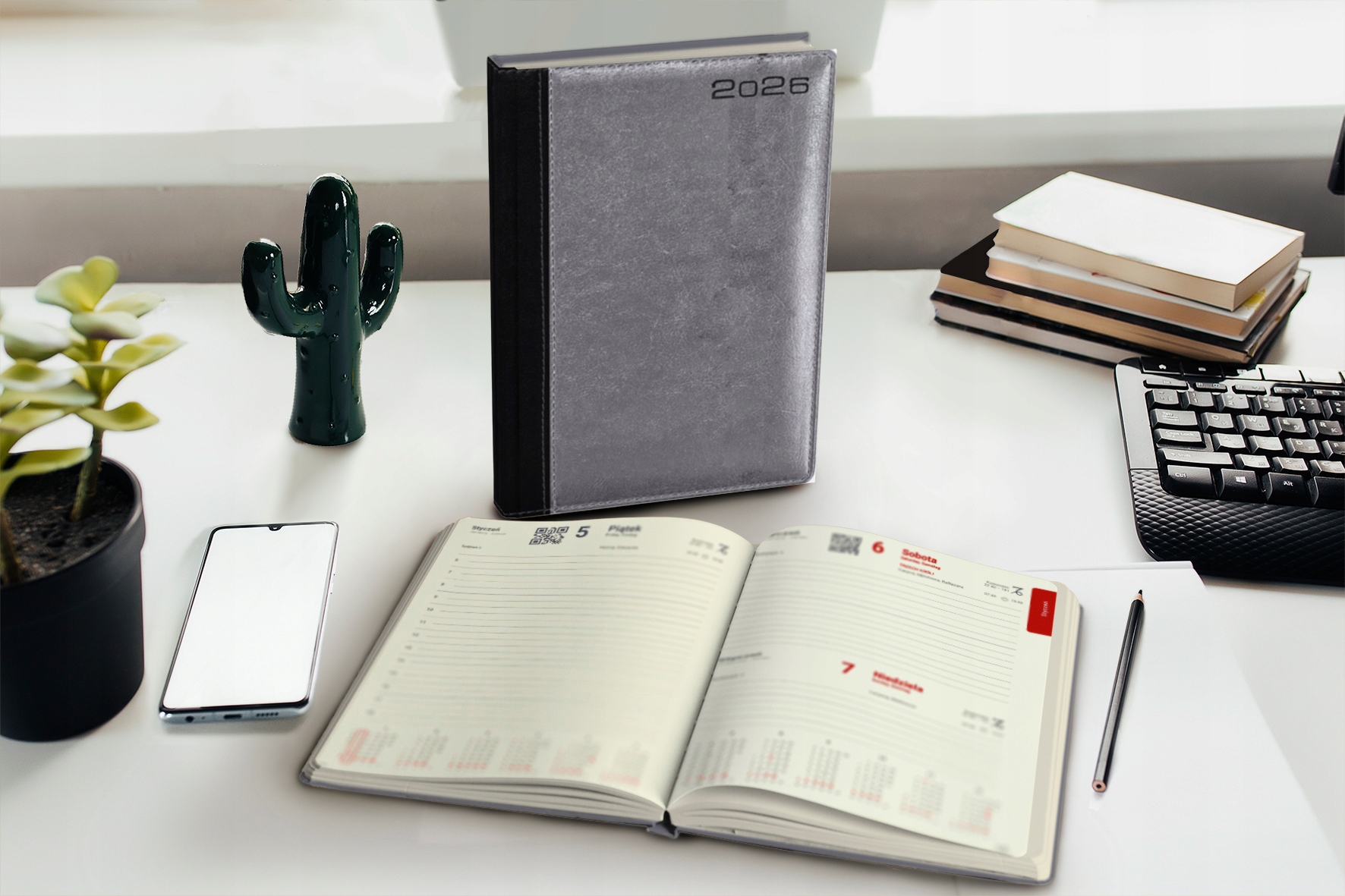 - Календарь: укороченный календарь на 3 года, ежедневный календарь (PL, GB, D) с укороченной годовой раскладкой, страница для заметок, именин, праздников, Зодиака, восходов и закатов, фаз Луны, нумерации недель