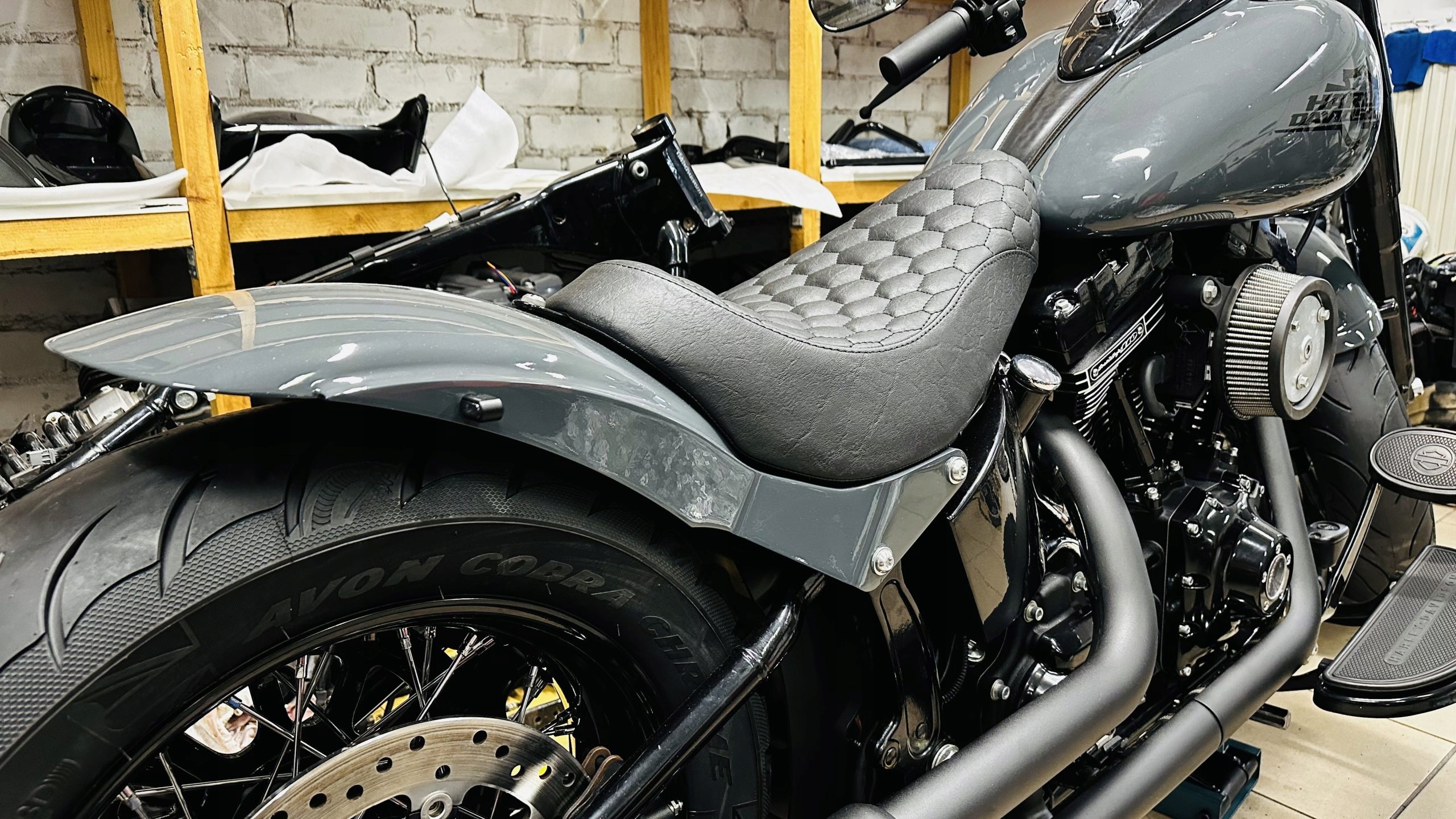 Заднее крыло и кастомное сиденье Harley Softail Twin.