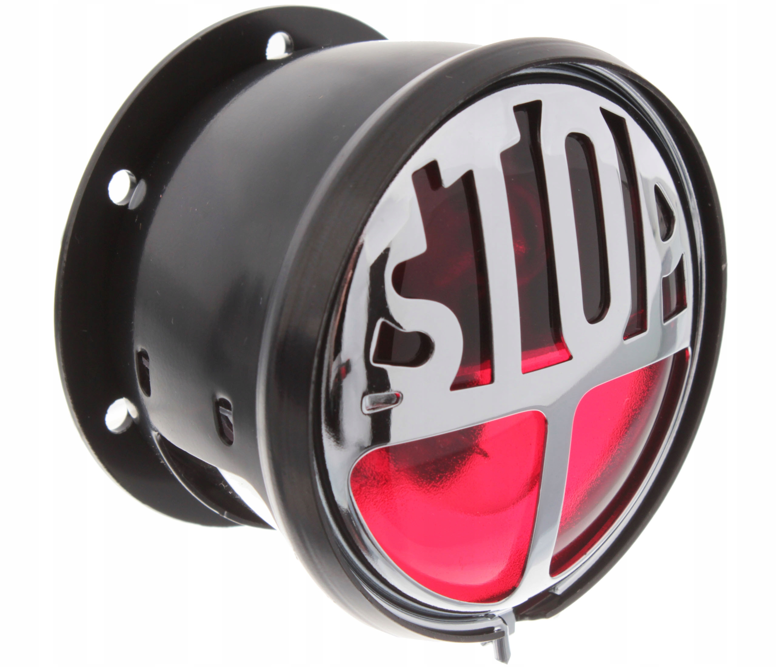 Описание: ветеран Lucas Lamp с надписью "Stop". Монтируется как задняя лампа в исторических мотоциклах: NSU, BMW, DKW, SHL, WFM, JUNAK и т. Д. У него есть позиция света, регистрационной подсветки и света. Лампа использует 2 отдельные камеры, в каждой из них есть одна лампочка. Во время ингибирования мотоцикла только верхний отсек с остановкой над надписью горит. Лампочки 2 штуки 12 В/10 Вт. Лампа из металлического черного, передняя хромированная надпись.