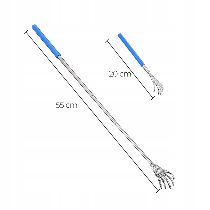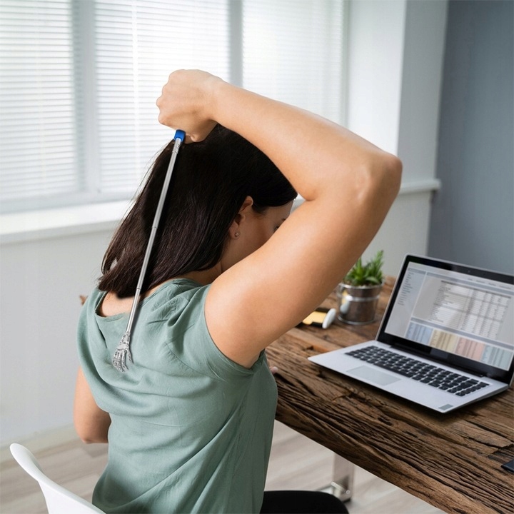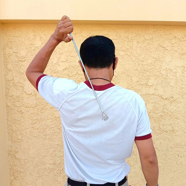 - Телескопическая конструкция делает чесалку для спины чрезвычайно компактной в сложенном виде и помещается практически в любом месте.