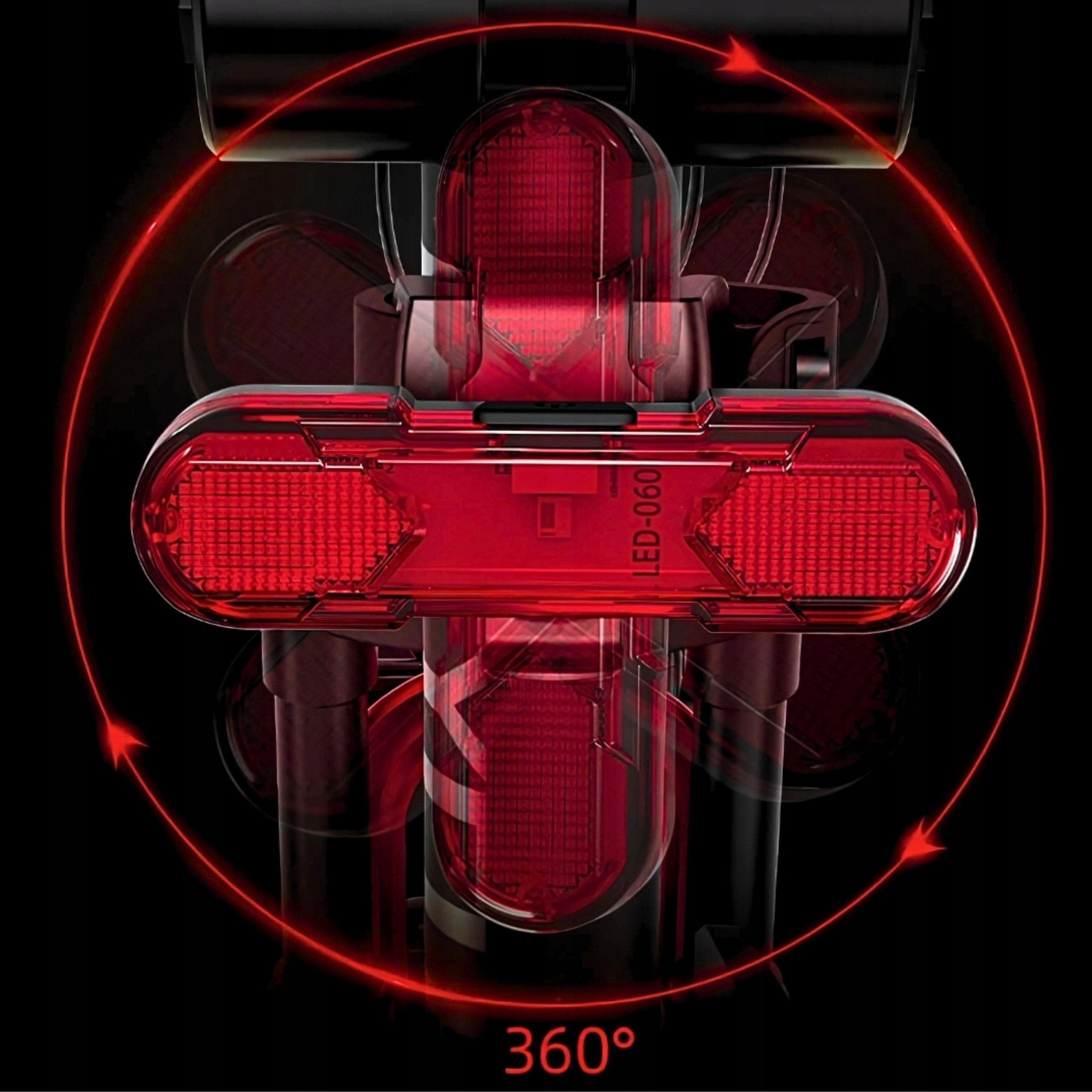 Функция вращения с 360 градусов b> обеспечивает полную универсальность использования! Вы можете легко адаптировать лампу к вашим потребностям - прикрепить ее на велосипеде, шлеме, полосе или других поверхностях. Установка угла освещения, что увеличивает вашу безопасность и комфорт во время вождения, бега или ходьбы