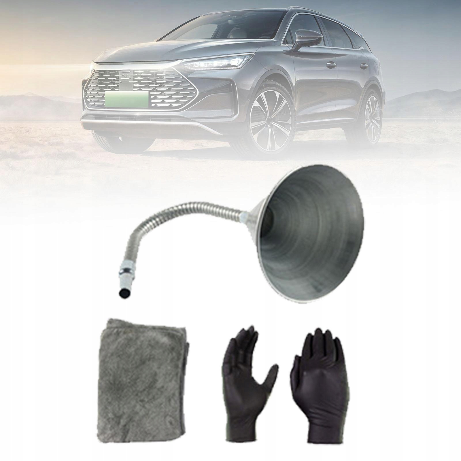 Общая, изогнутая металлическая воронка для автомобильных масел с полотенцем перчатки