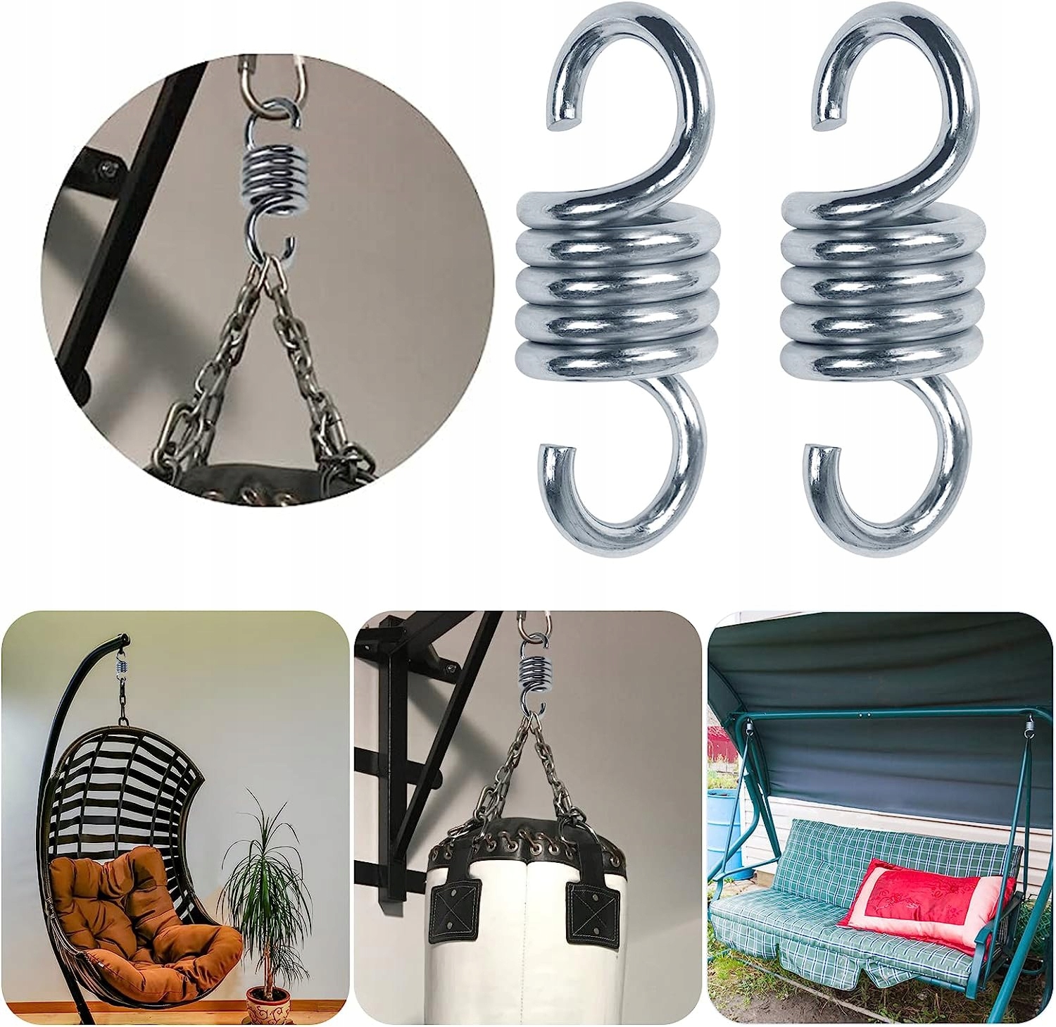 - Способ подвески: Пружины имеют на концах специальные крючки, которые облегчают крепление пружины к креслам-гамакам, террасные качели или другое оборудование.