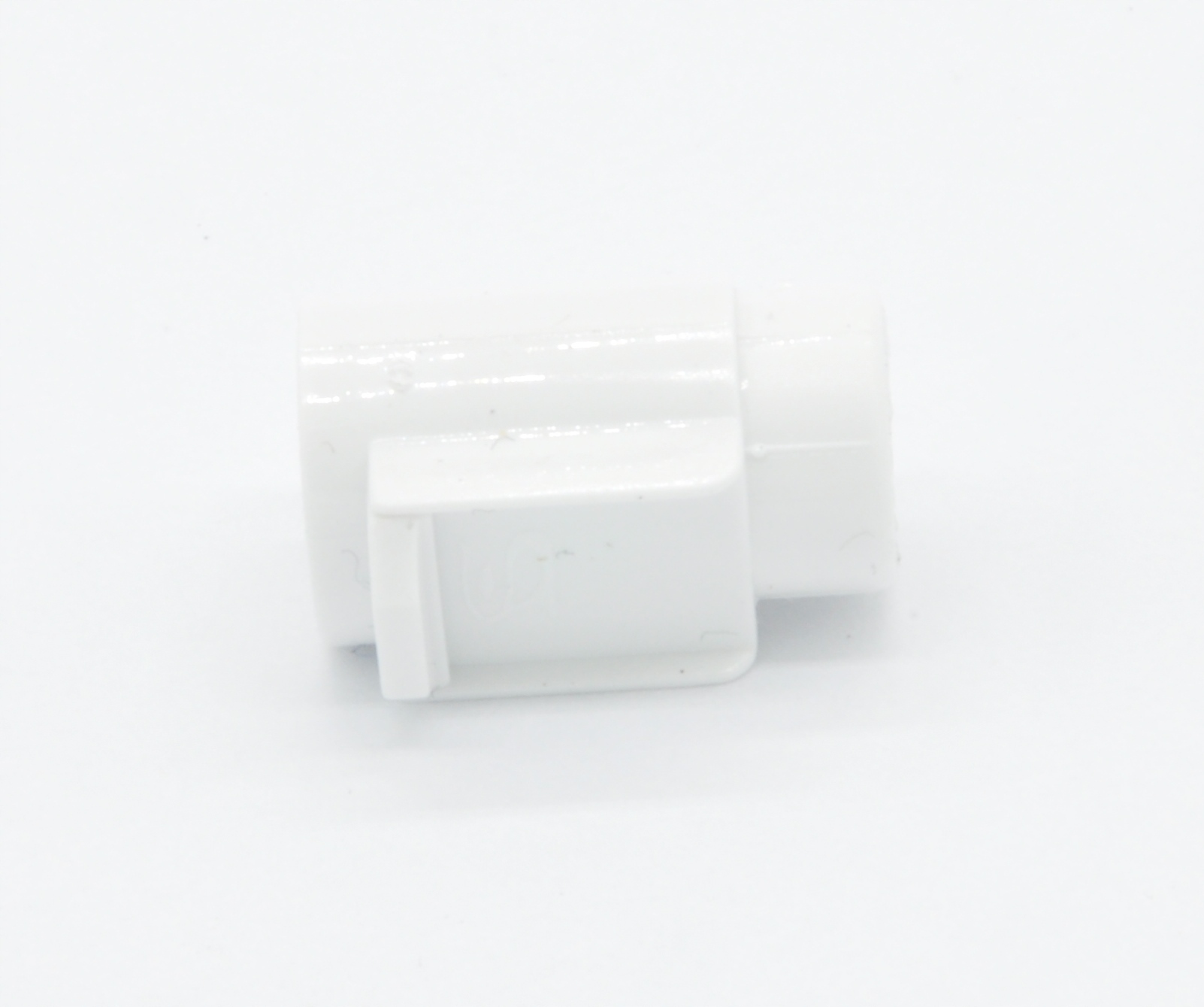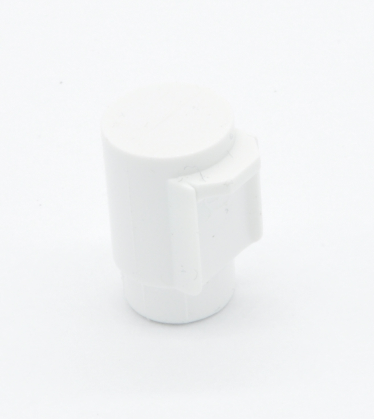 Описание: торцевая заглушка изготовлен из белого пластика. Это верхняя крышка нижней оконной петли.